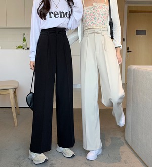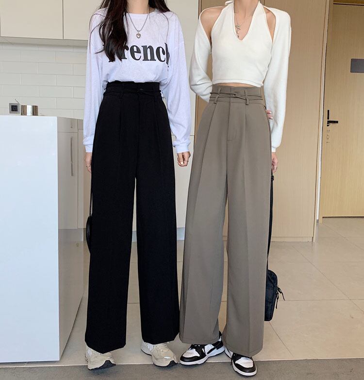 パンツ スプリング薄手ルーズカジュアルハイウェストウェストワイドレッグ 春物 ワイドパンツ YY-ファッション9978584920