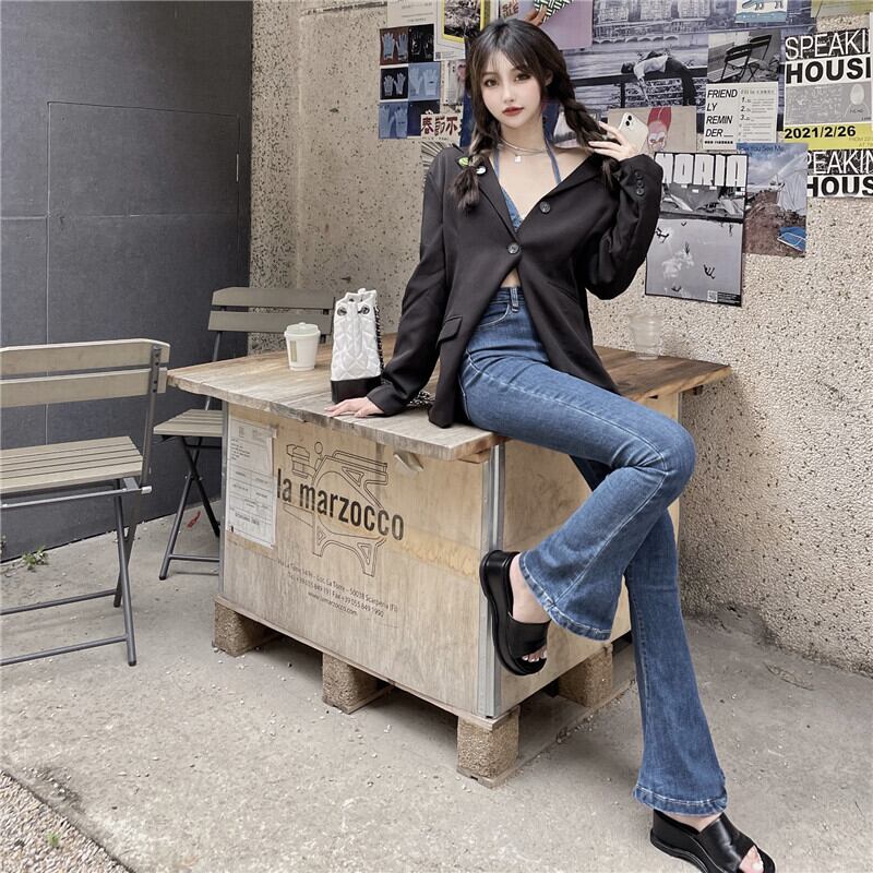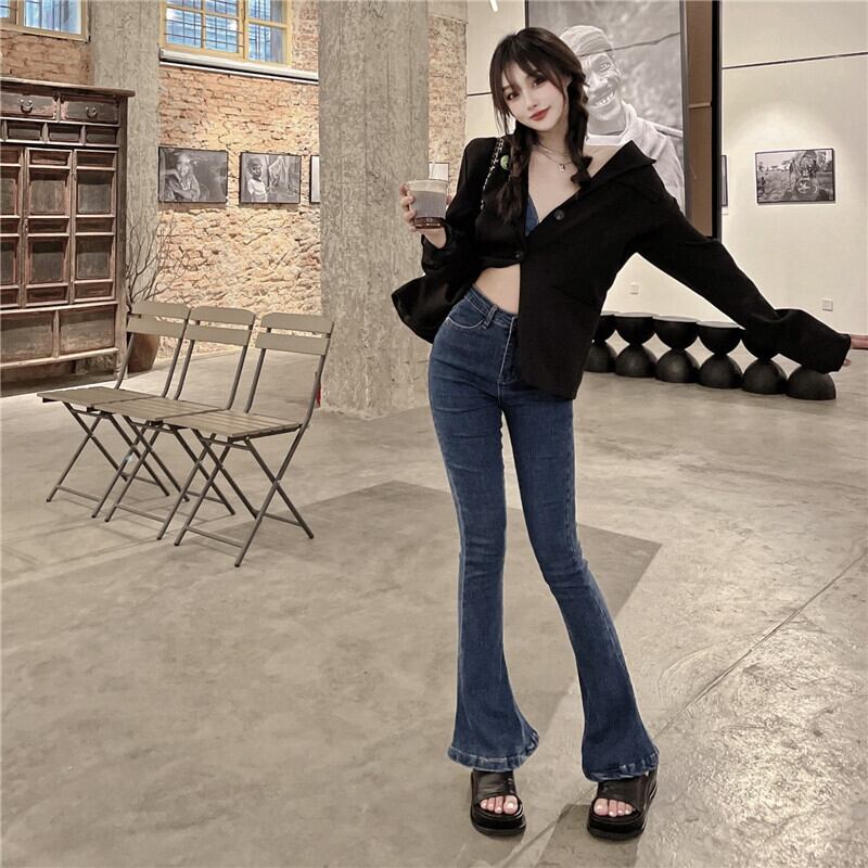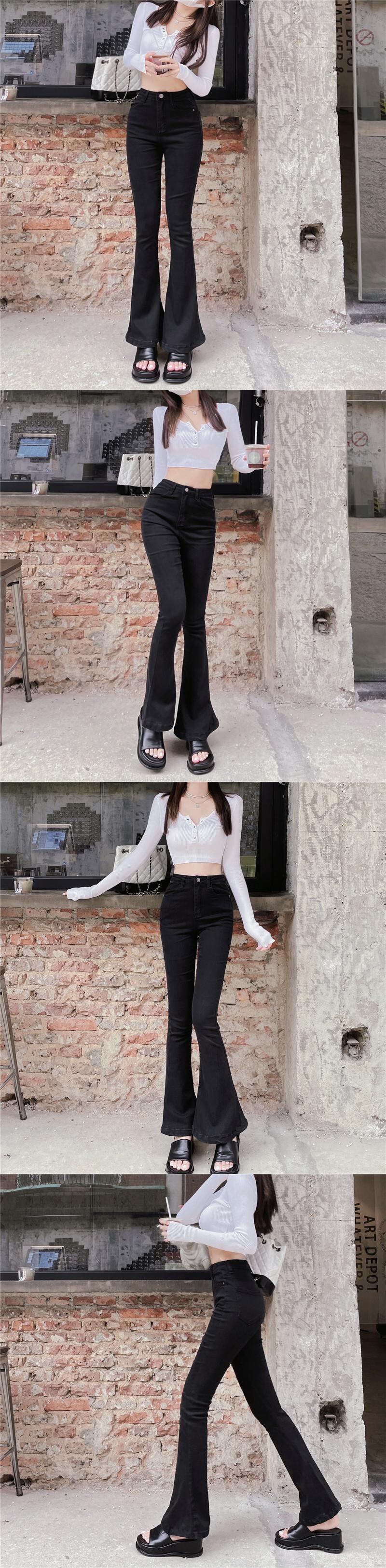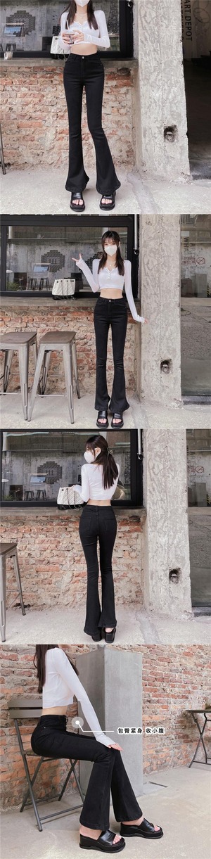 ブラックストレッチパンツ スプリングオータムハイウェスト薄手ジーンズ レッド エラスティック 伸縮 春物 秋物 YY-ファッション88468546186