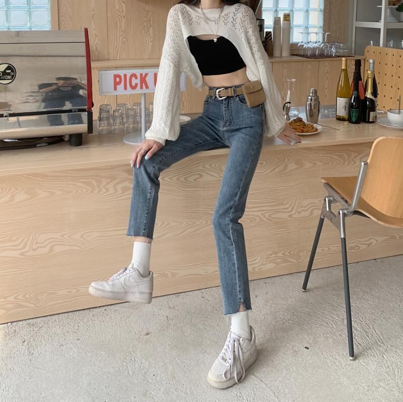 ジーンズ スタンダードウェストスリム薄手ワイドレッグパンツ レトロ ワイドパンツ YY-ファッション45381029259