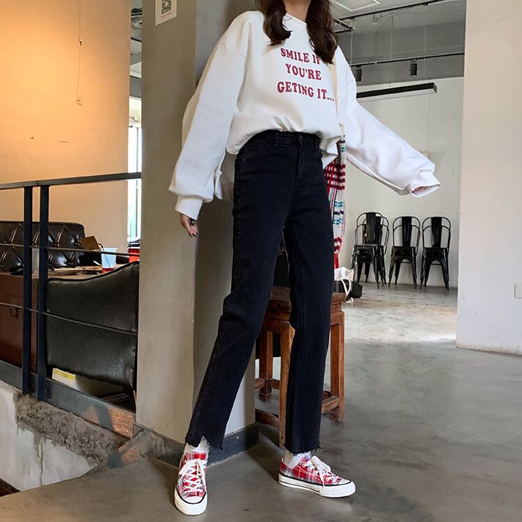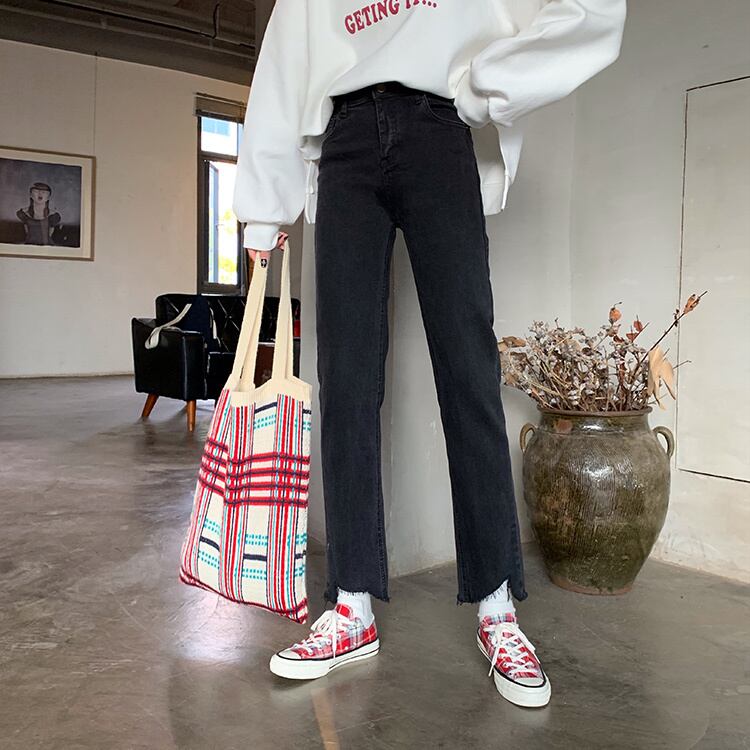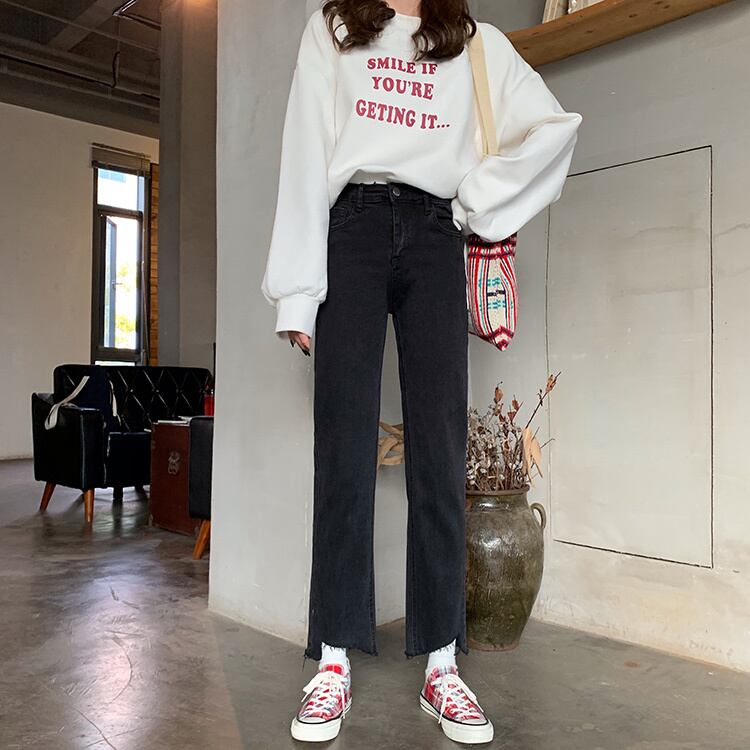 オータムルーズパンツ スリムハイウェストジーンズ ブラック 秋物 YY-ファッション91778336296