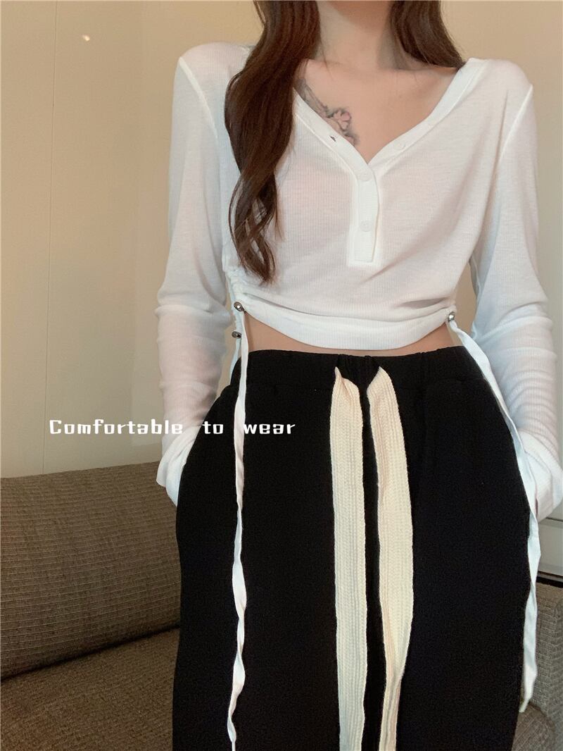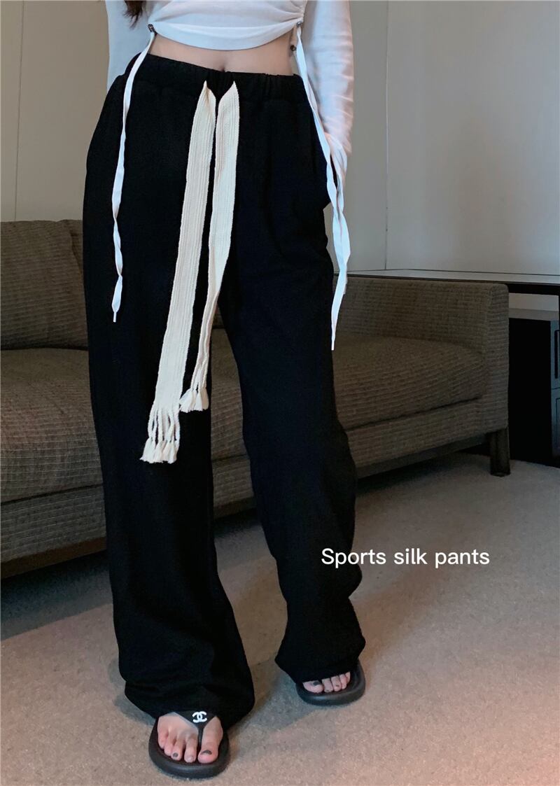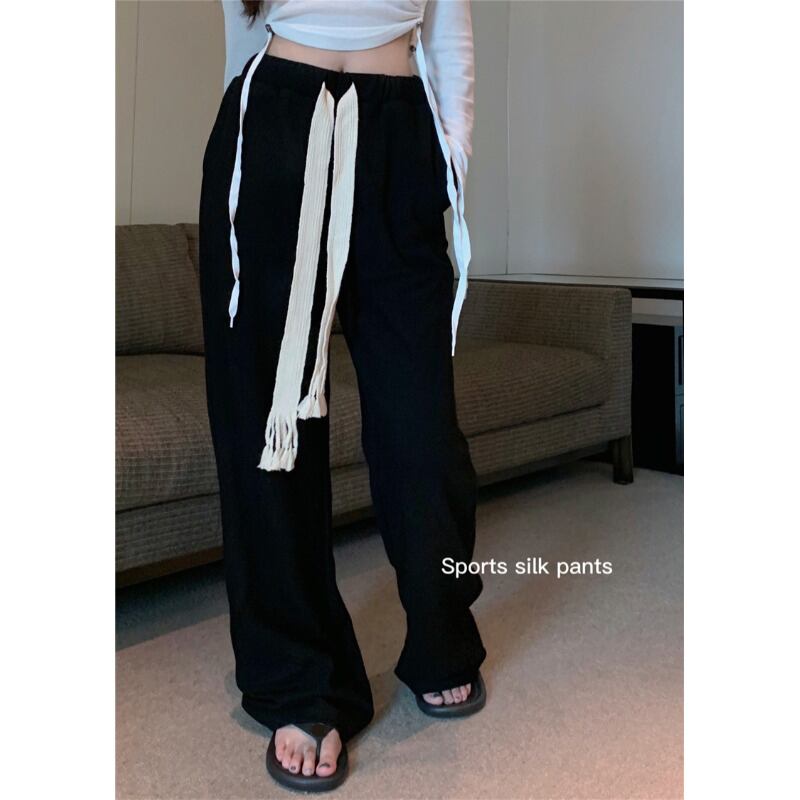 パンツ 薄手ルーズハイウェストウェストオータムブラック 秋物 YY-ファッション78175871600