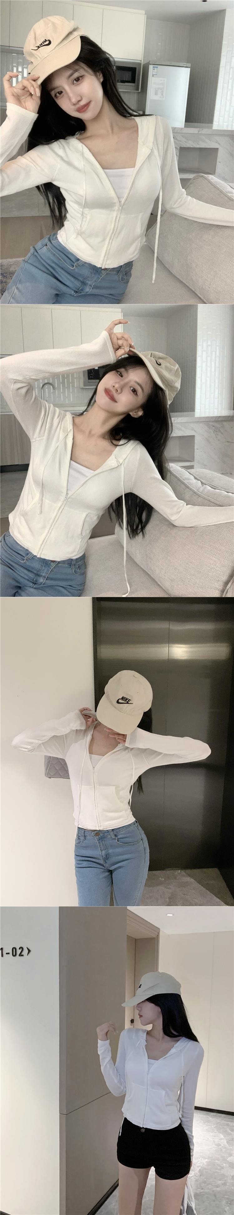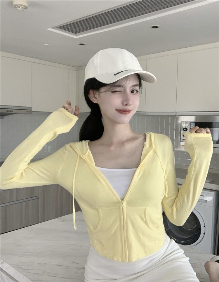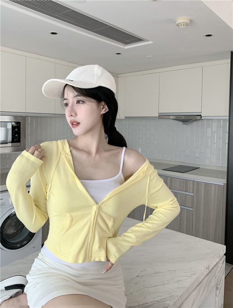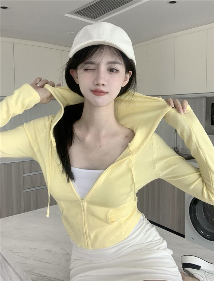フードジャケット ショートイエロージッパーカーディガンオータム ロング 秋物 YY-ファッション83673998674