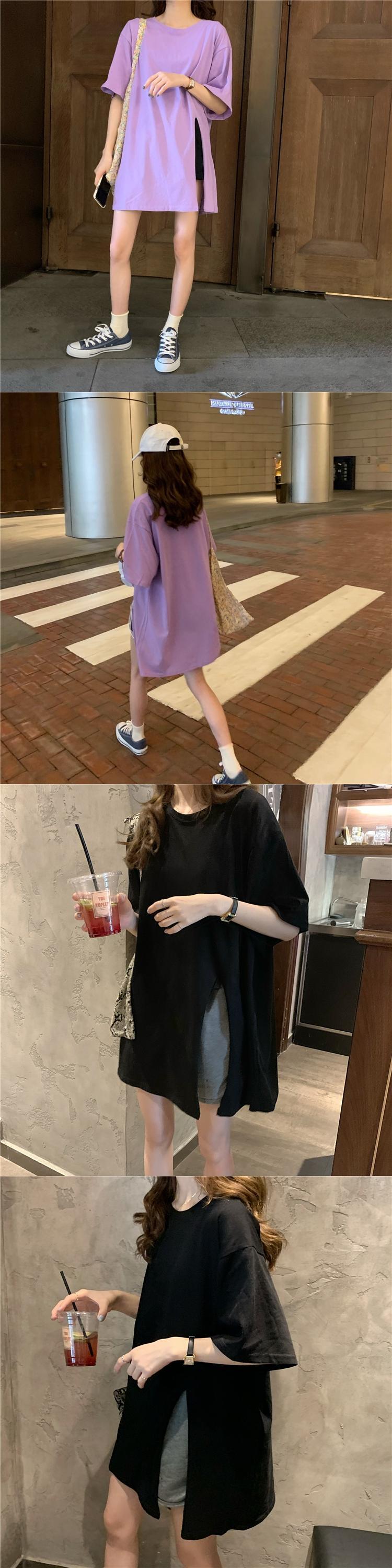 Tシャツ サマーレッドラウンドネックルーズスタイルトップス 夏物 Oネック パープル YY-ファッション92488192535
