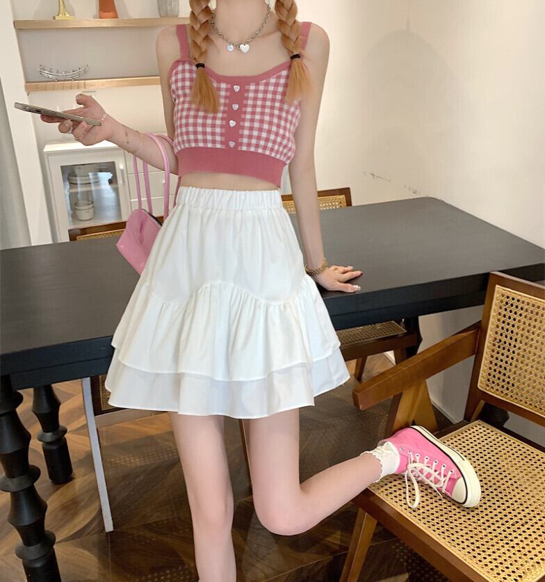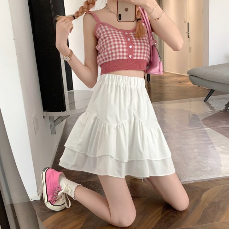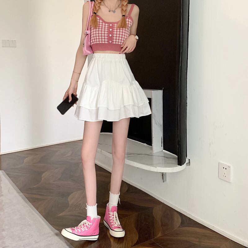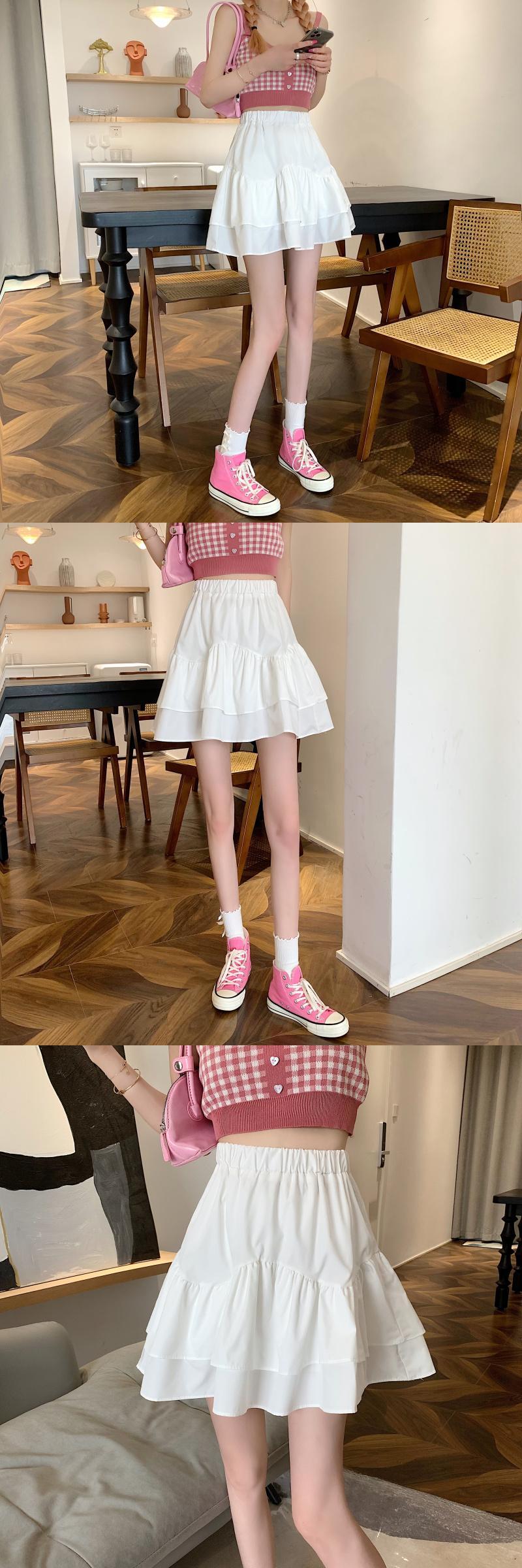 ホワイトスカート サマーハイウェストウェスト薄手Aラインプリーツ 夏物 YY-ファッション17803958534