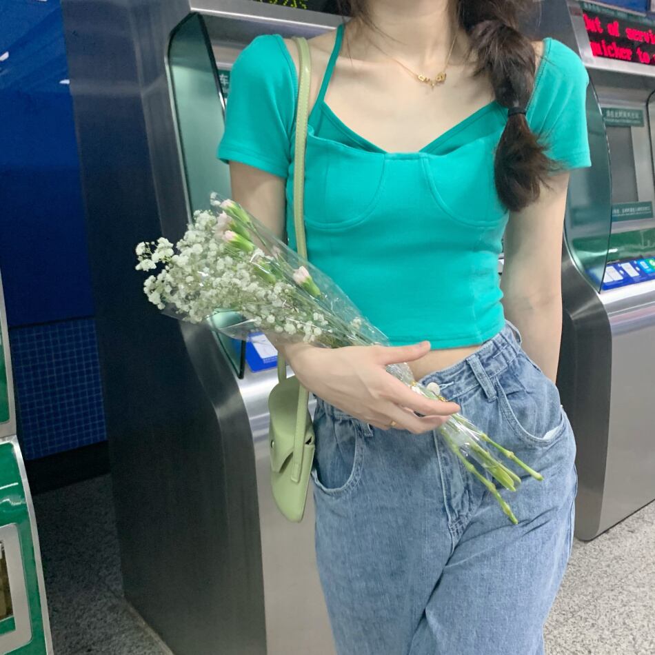 サマースタイルストラップレスカラースリムトップス Tシャツ 夏物 ピュア YY-ファッション97881137885