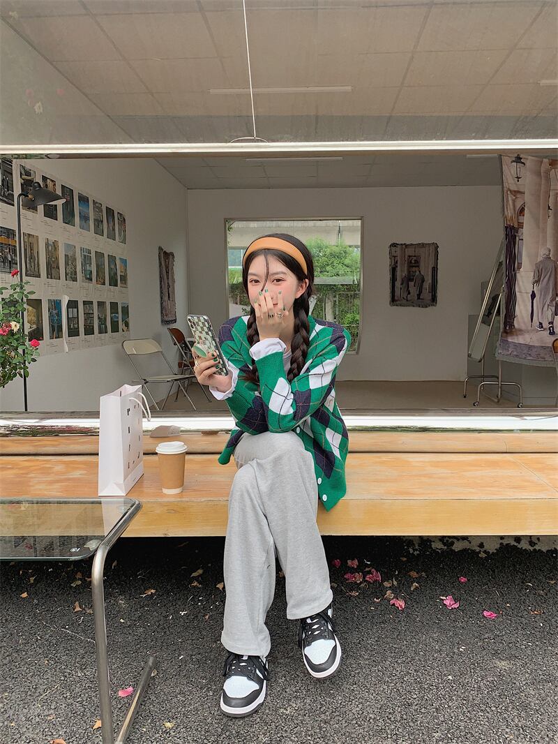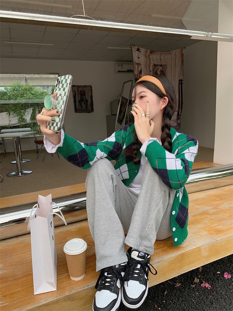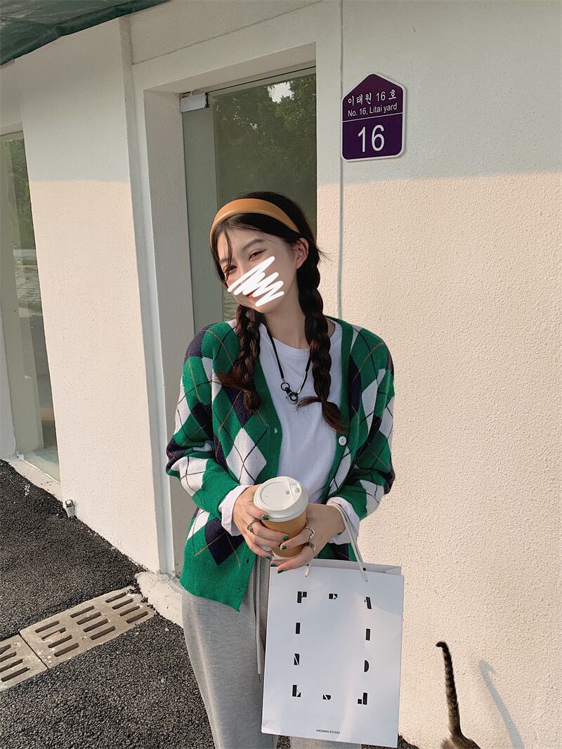 スタイルカーディガン格子柄セーター ジャケット レディースオータムルーズトップス ロング 秋物 YY-ファッション5958852976
