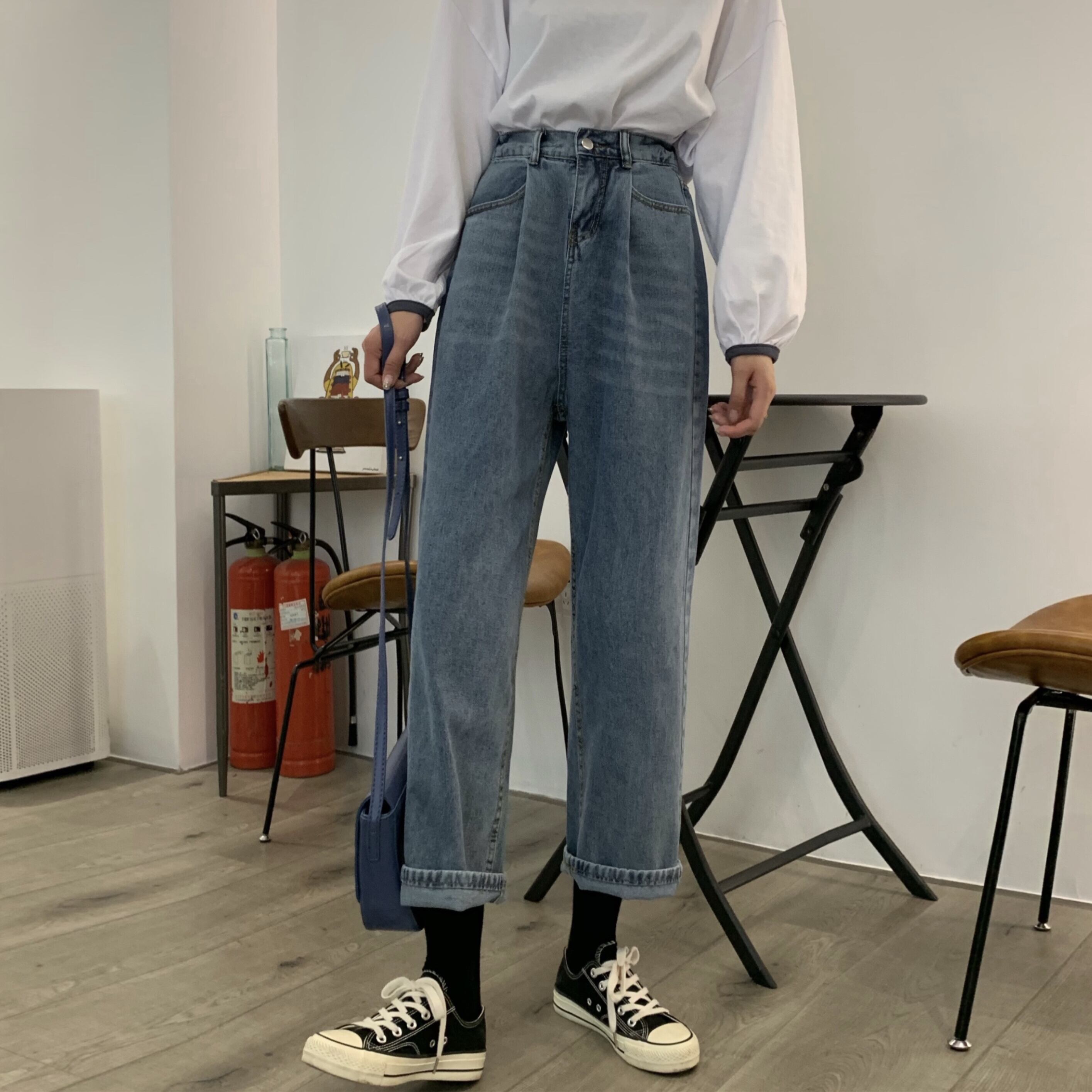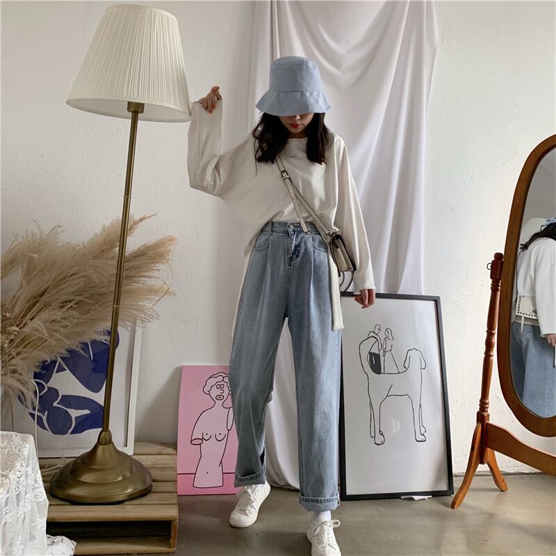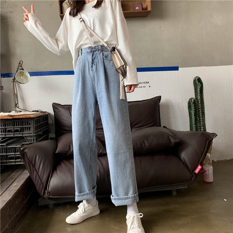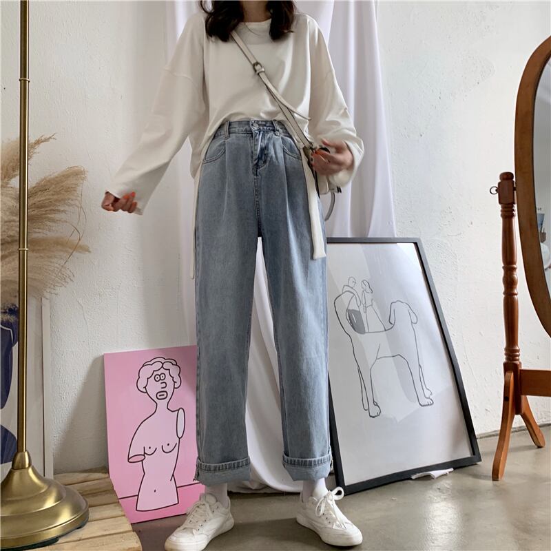 ルーズハイウェストウェストスリムパンツ レディースオータムカジュアルストレッチジーンズ エラスティック 伸縮 秋物 YY-ファッション4996498819