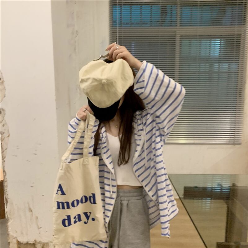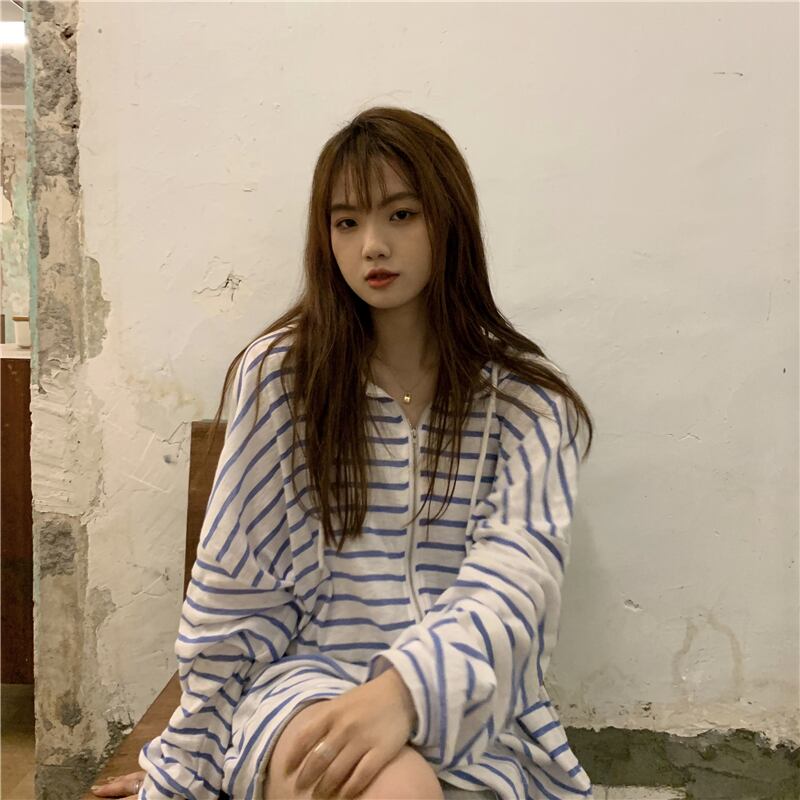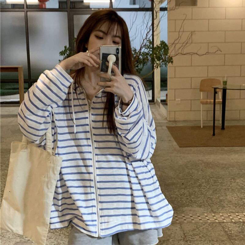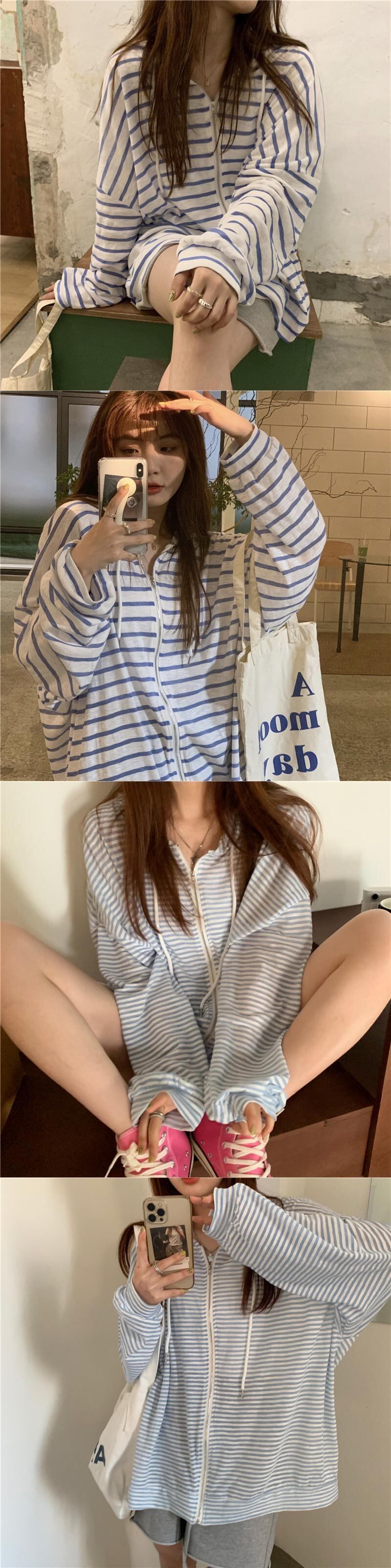 ストライプフードジャケット サマー薄手ルーズトップス ロング 夏物 YY-ファッション14213131417
