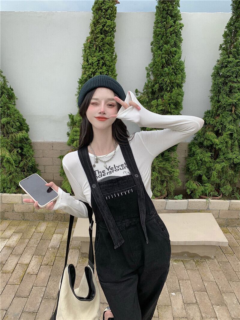 ジーンズ ハイウェストウェストルーズパンツ オータムショートTシャツ 秋物 YY-ファッション34028557637