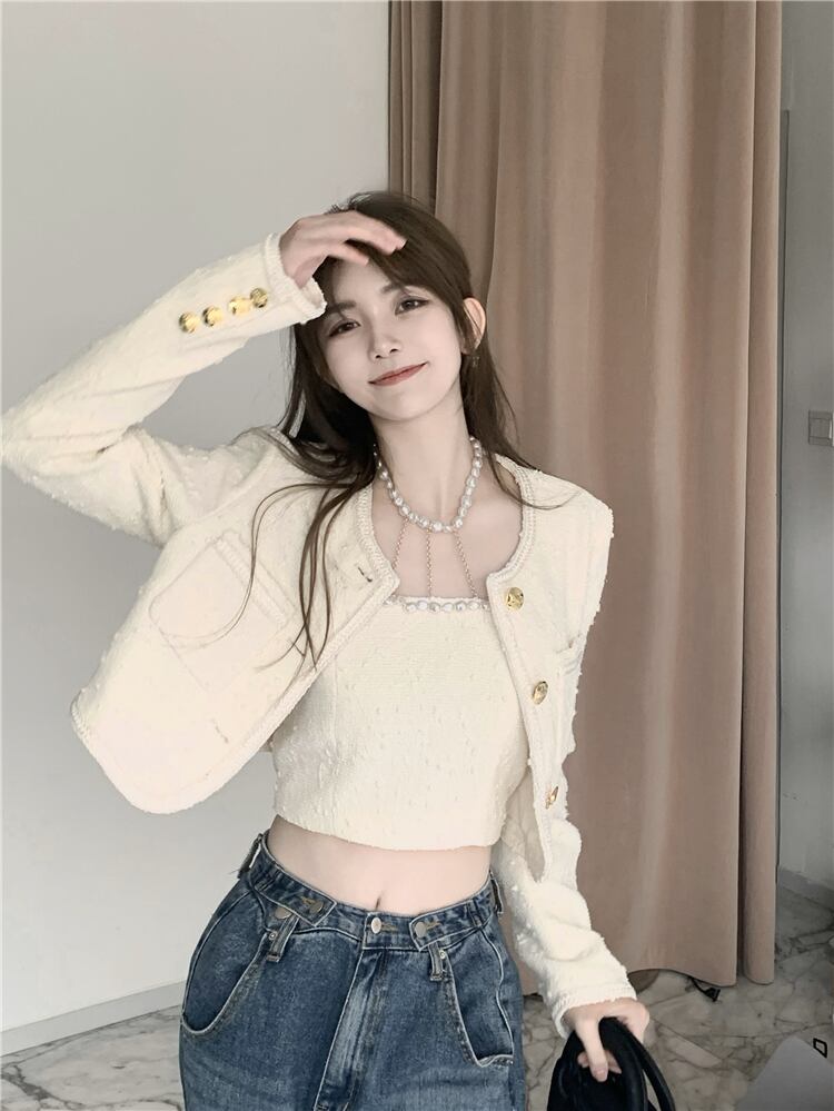 ショートコート オータムホワイトカーディガントップス ロング 秋物 YY-ファッション85905798915