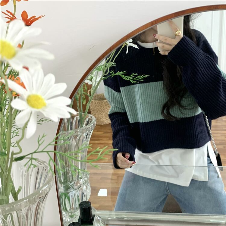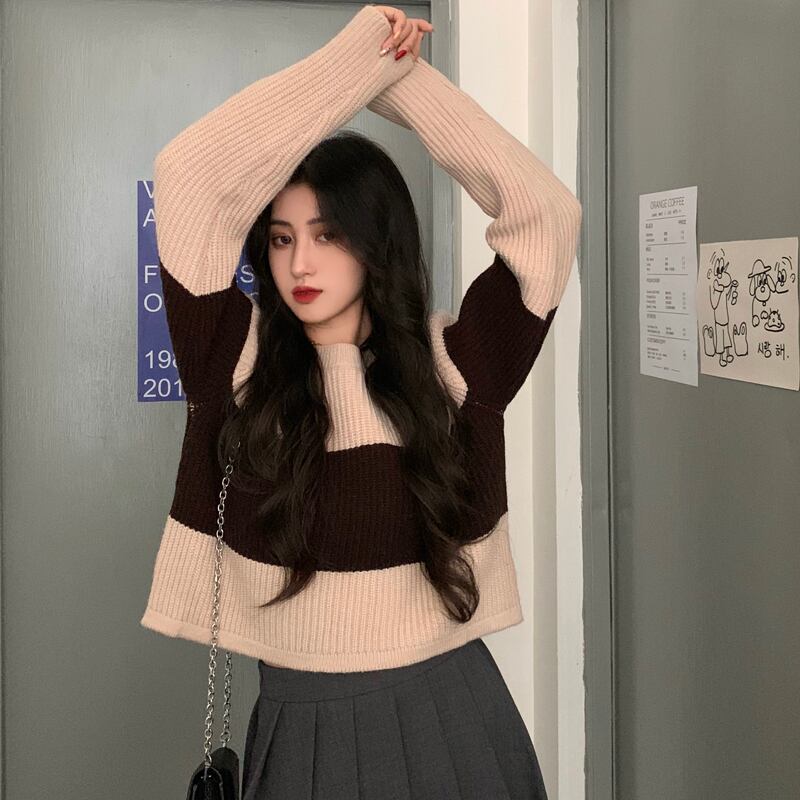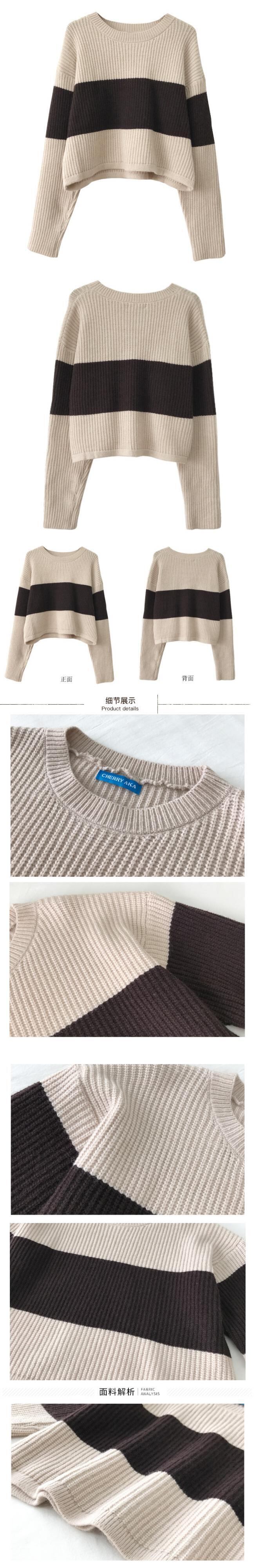 ストライプセーター スタンダードスタイルルーズショートニットジャケット レトロ YY-ファッション72430603395