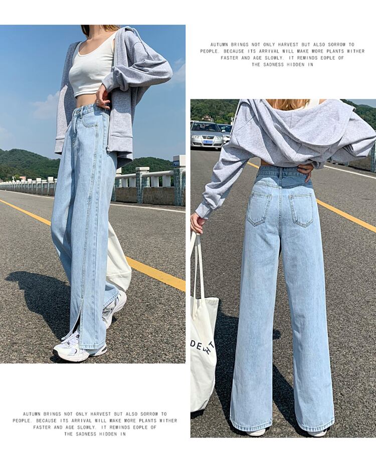 オータムスタイルハイウェストウェストルーズワイドレッグパンツ 秋物 ワイドパンツ ステッチ YY-ファッション43143499907