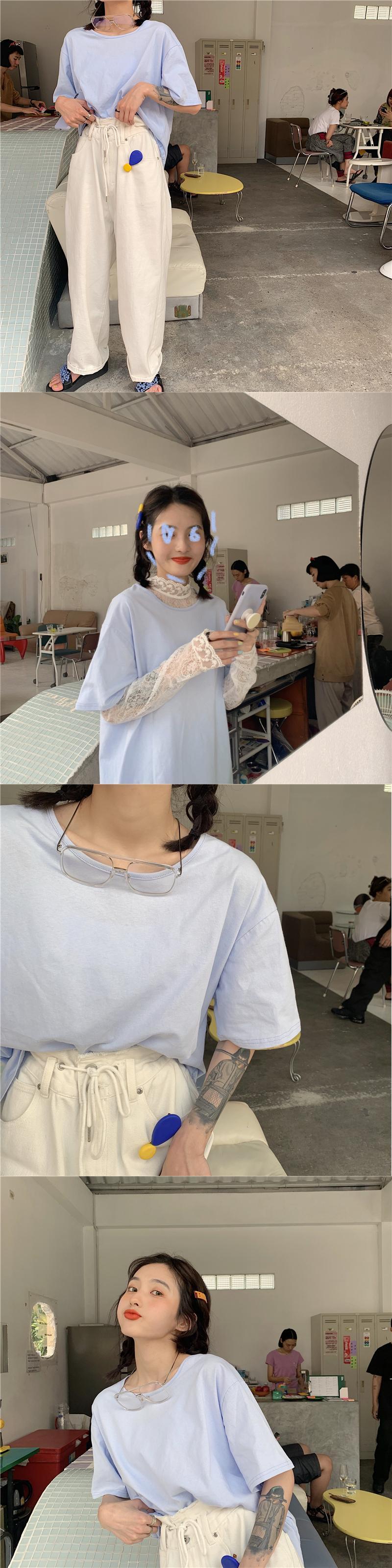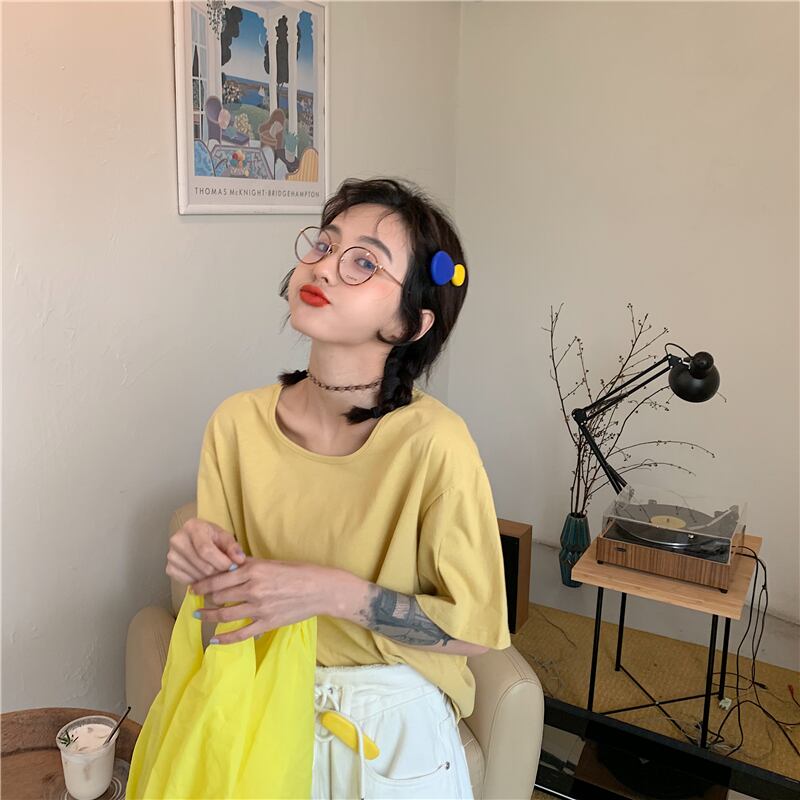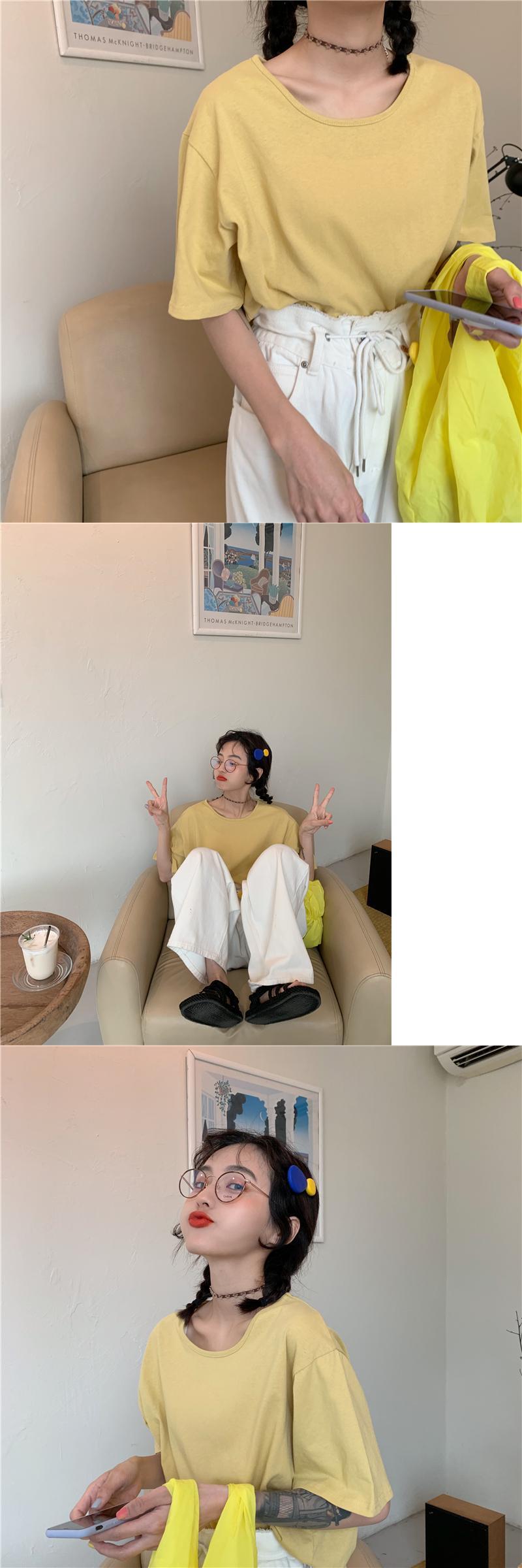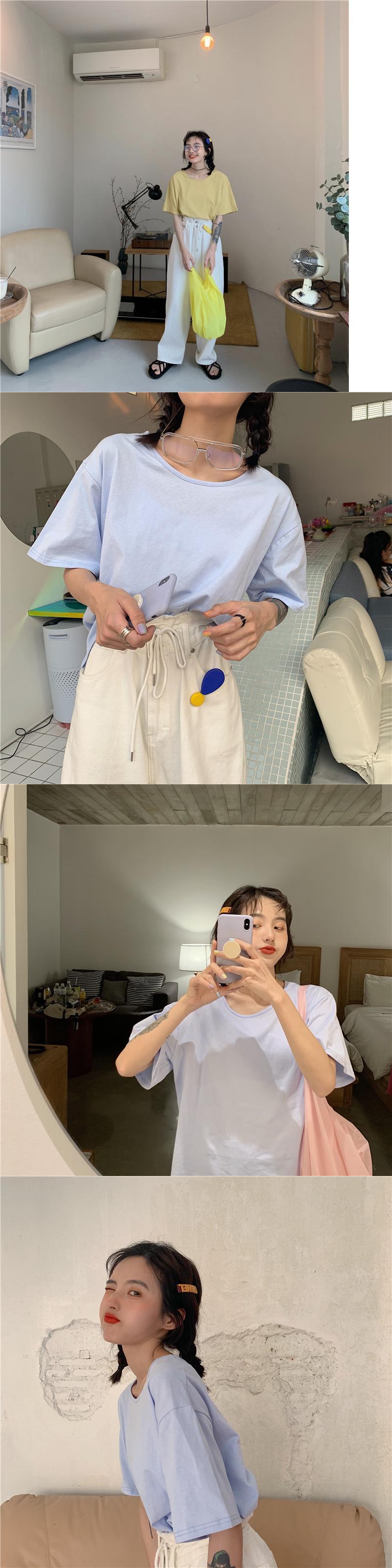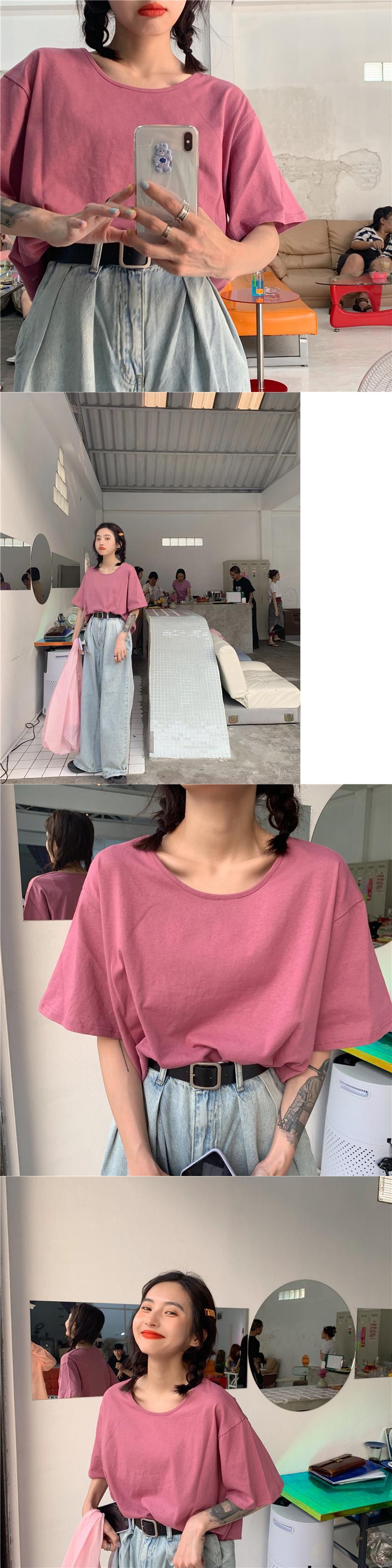 Tシャツ ソリッド カラールーズ薄手サマートップス コットン 夏物 ピュア ソリッドカラー YY-ファッション99709394086