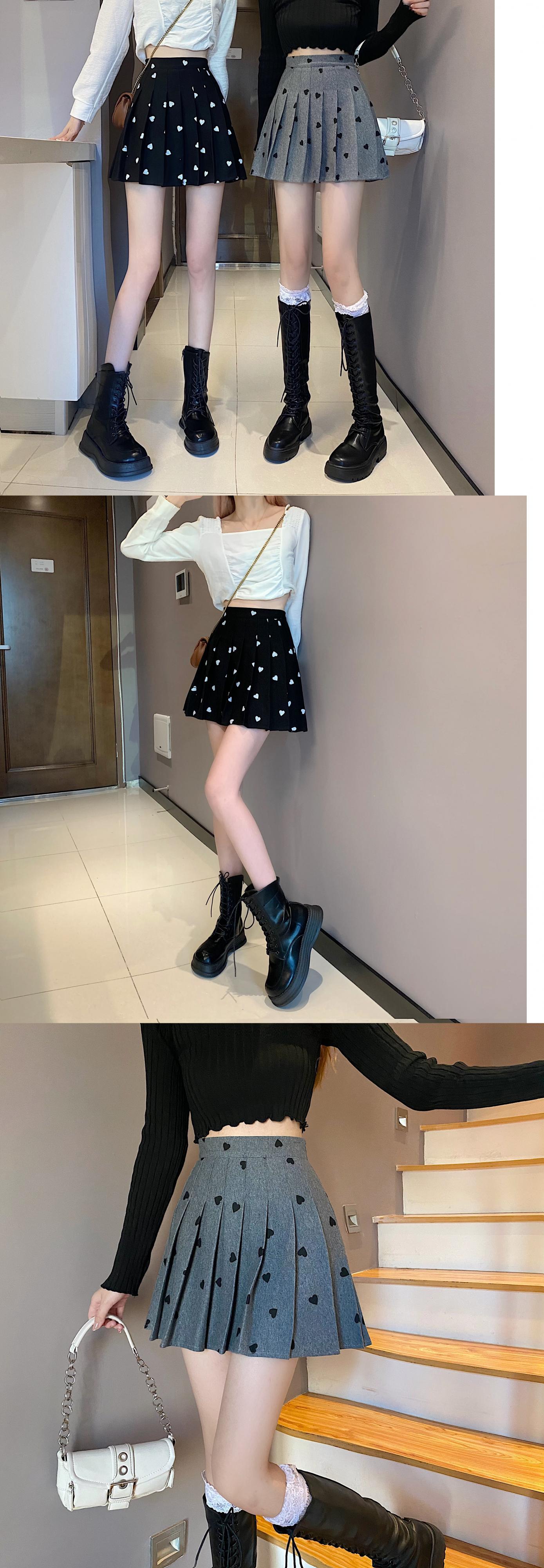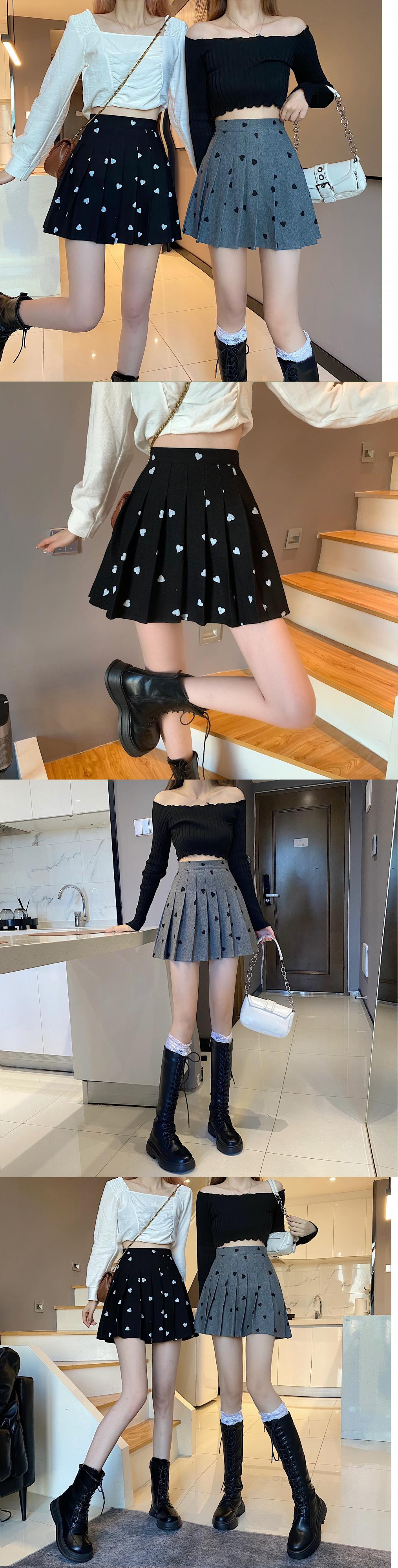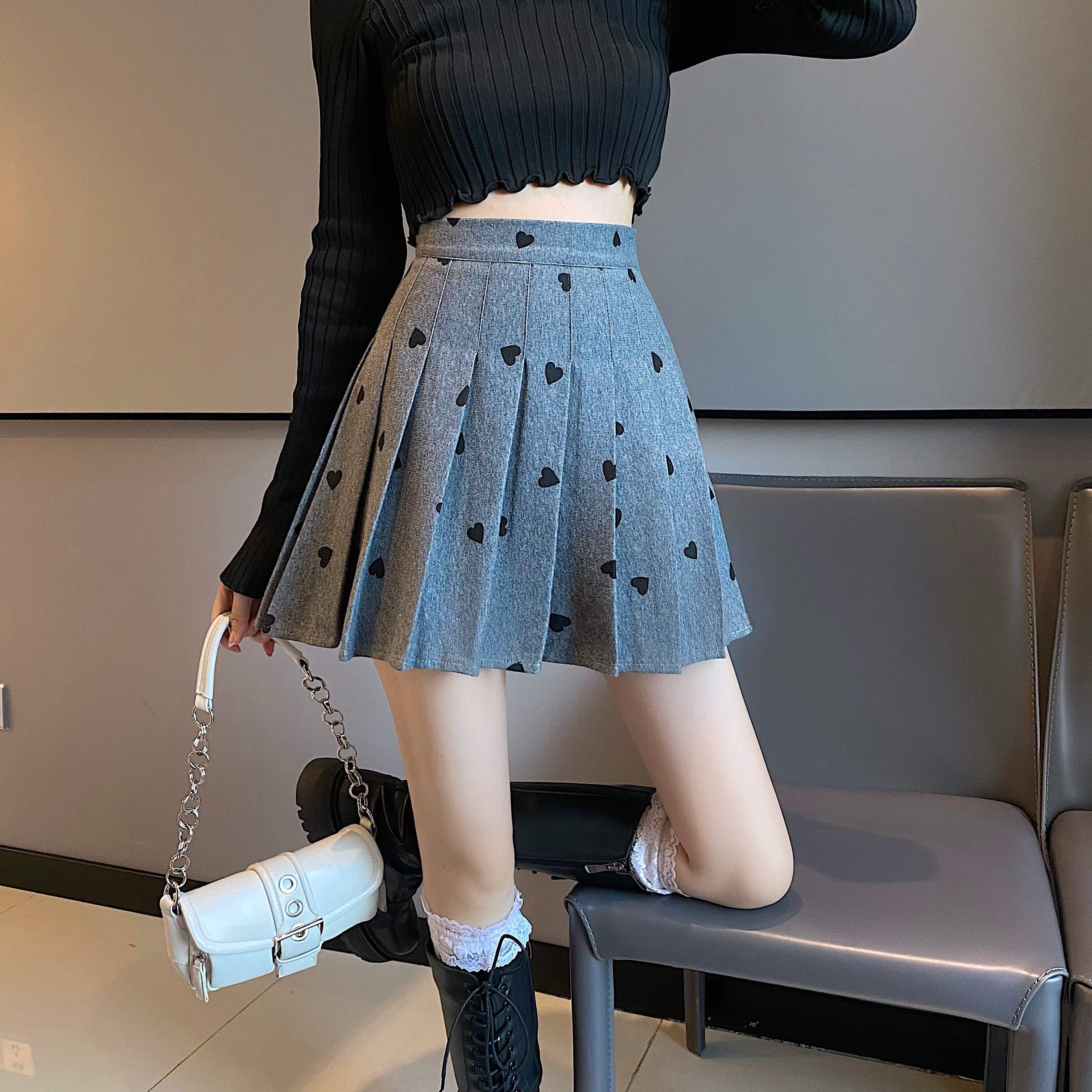 ニットスタンダードプリーツスカート オータムハイウェストウェストAラインショートプリント レトロ 秋物 YY-ファッション2526735663