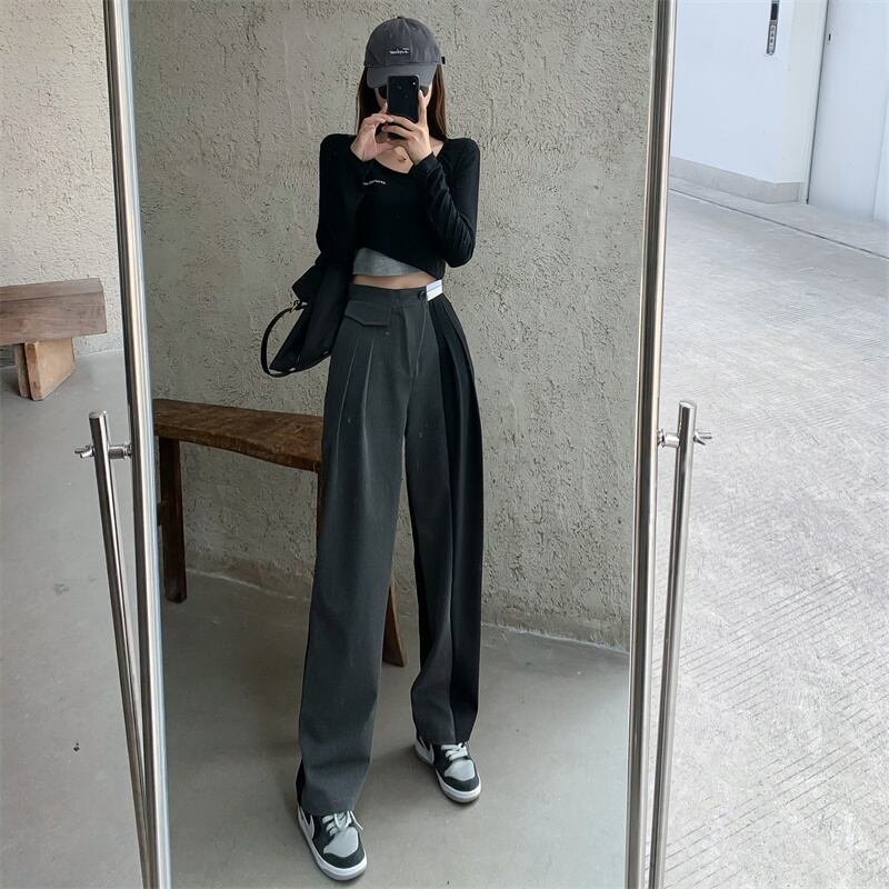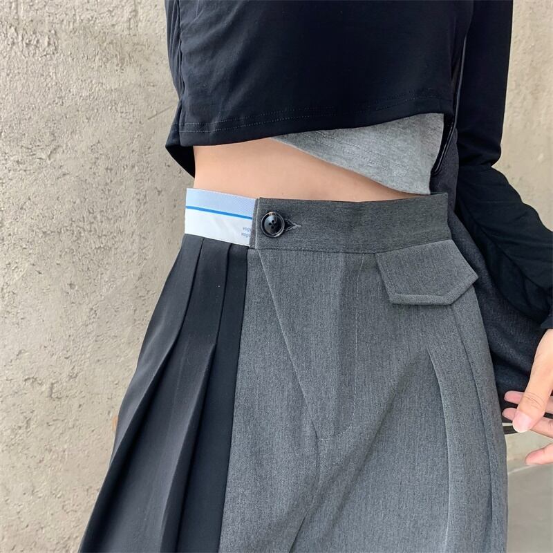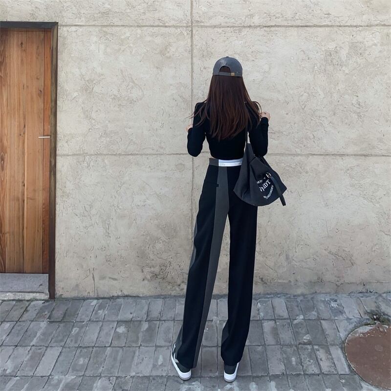 カジュアルパンツ オータムハイウェストウェストルーズワイドレッグ 秋物 ワイドパンツ ステッチ YY-ファッション29113473302
