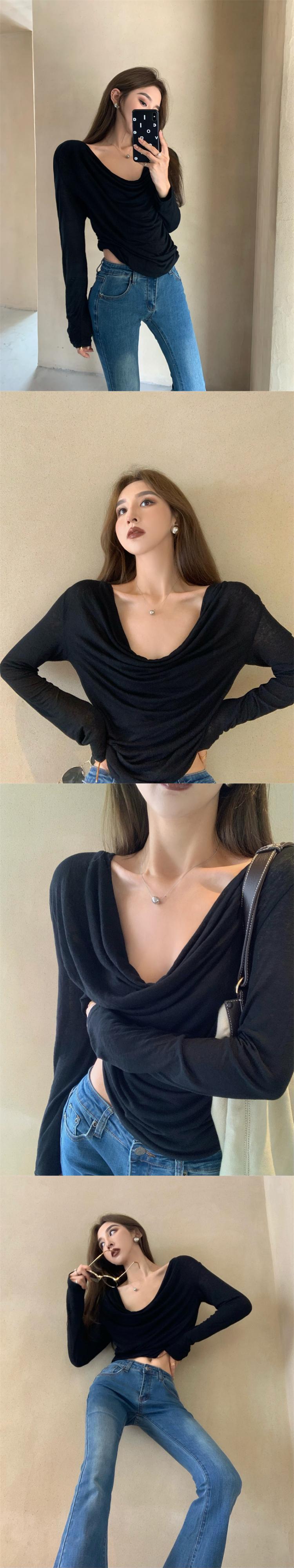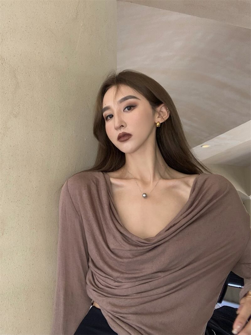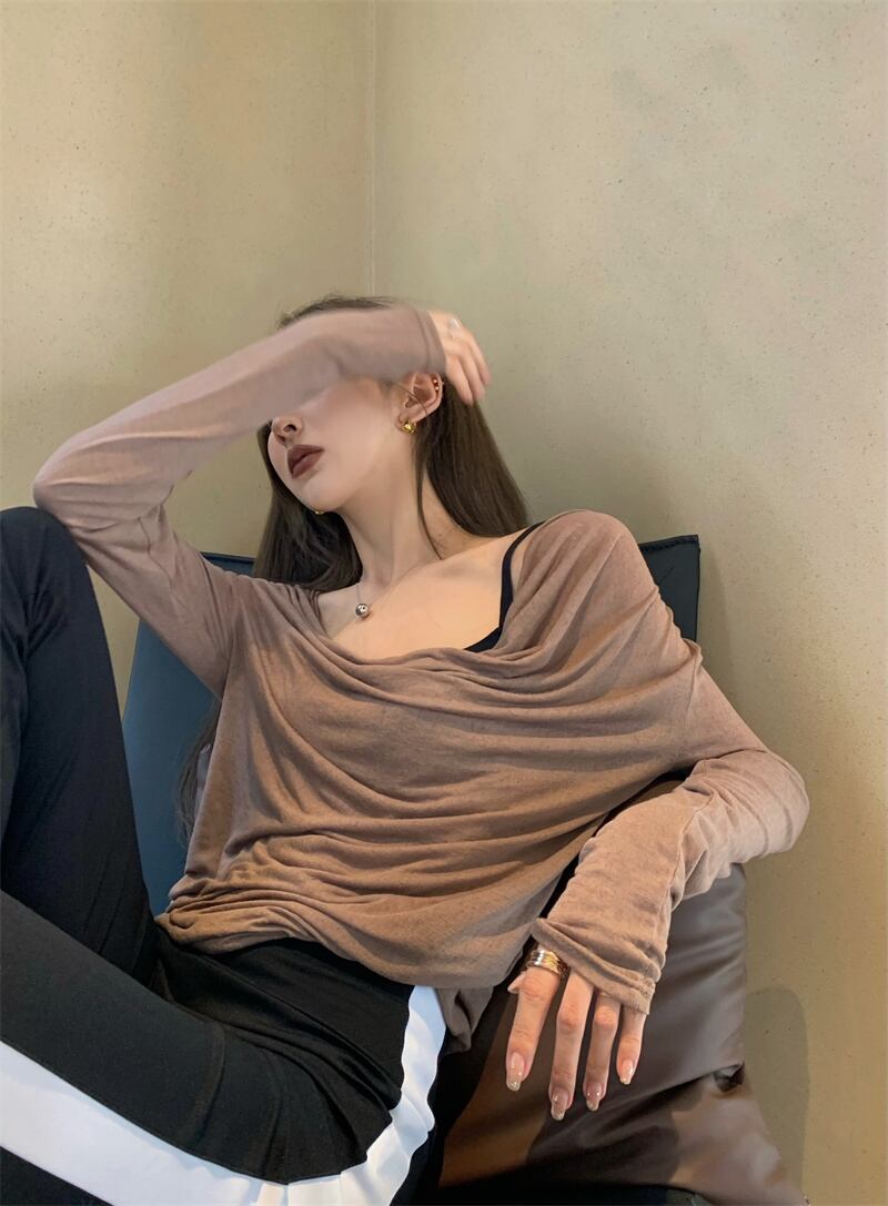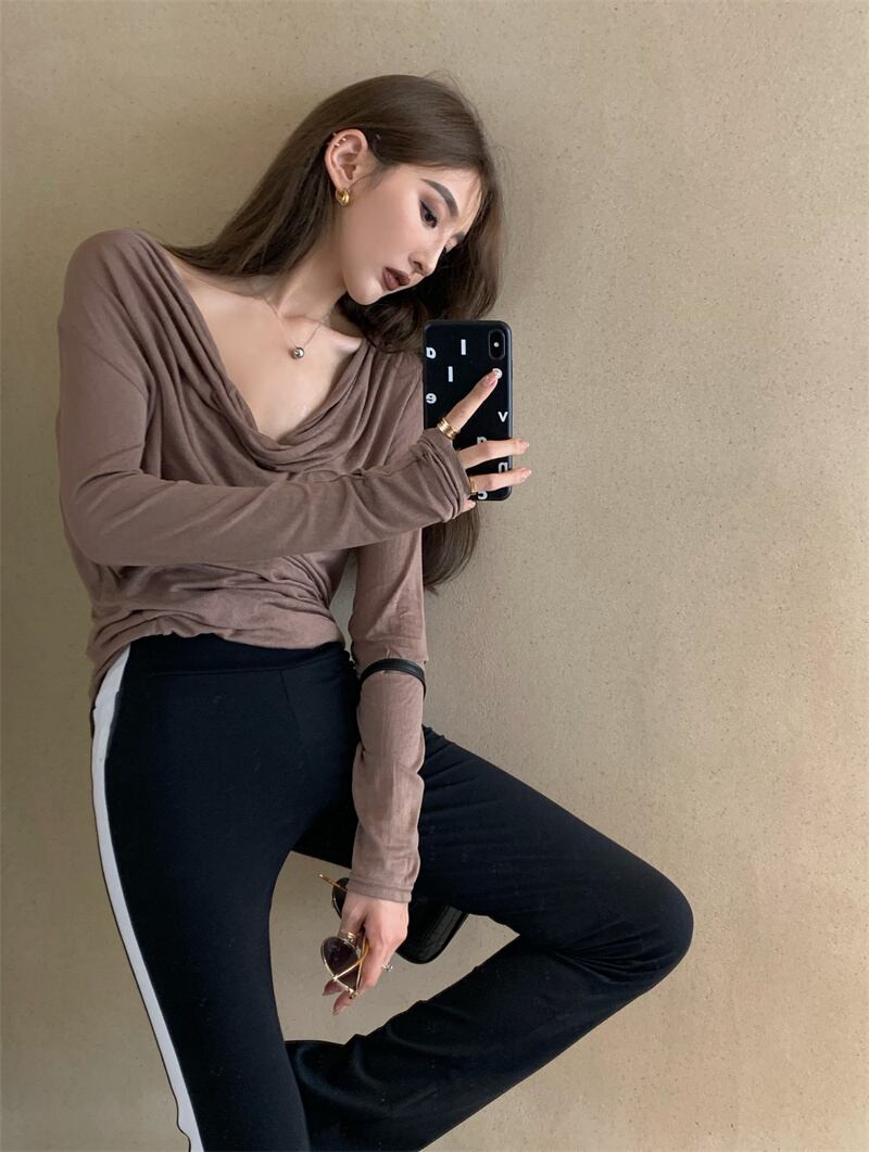 スタイルTシャツ ソリッド カラールーズオータムカジュアルトップス ロング 秋物 ソリッドカラー YY-ファッション68335663772