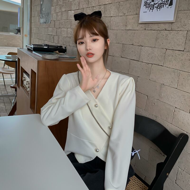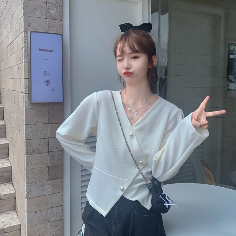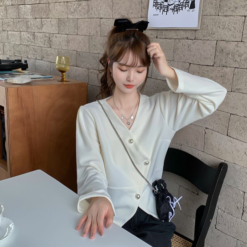 ショート長袖スリーブシャツ ホワイトトップス ロング YY-ファッション99877914803