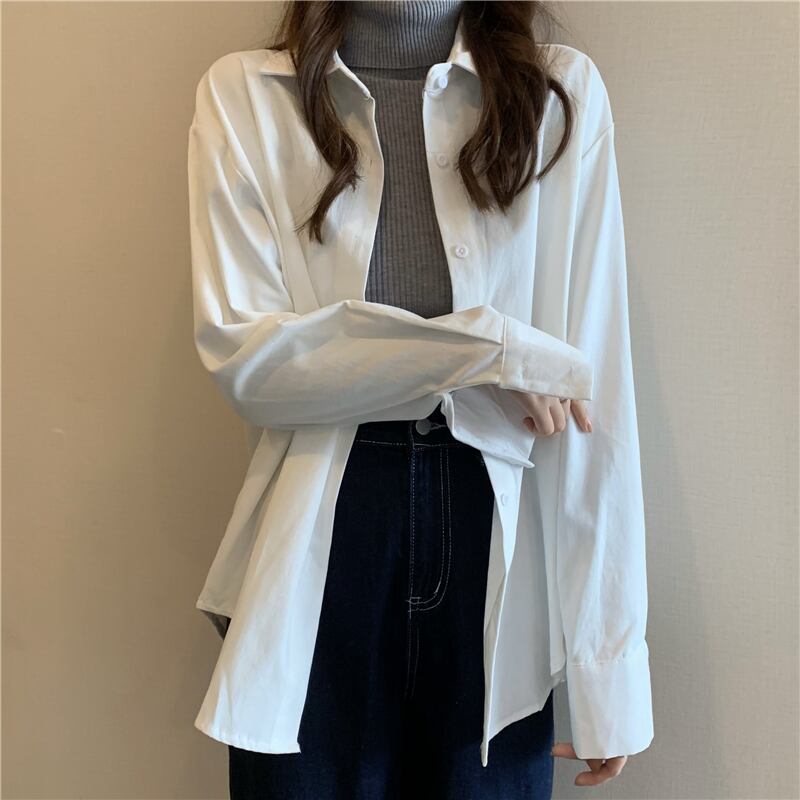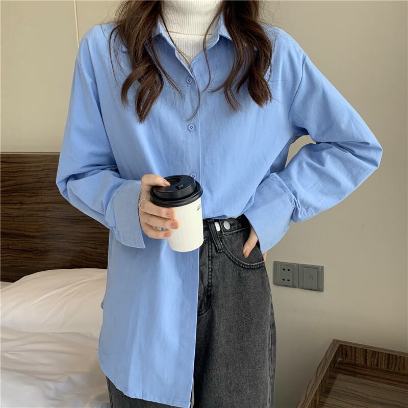 ブルーシャツ スプリングオータムスタイルルーズブラウス カーディガンジャケット ロング 春物 秋物 YY-ファッション33898846536