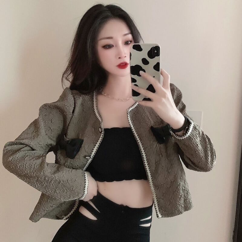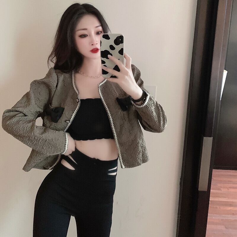 リボンカラージャケット 薄手ハイウェストスリットオータム 秋物 YY-ファッション6352279177