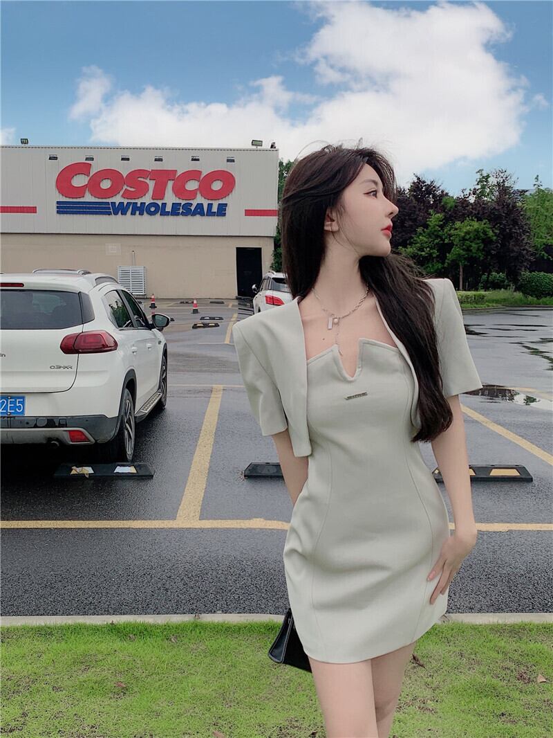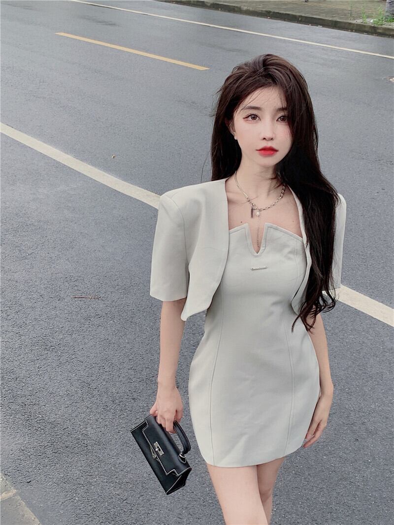 Vネックトップス バック薄手スカート ショートジャケット ストリート YY-ファッション97462178681