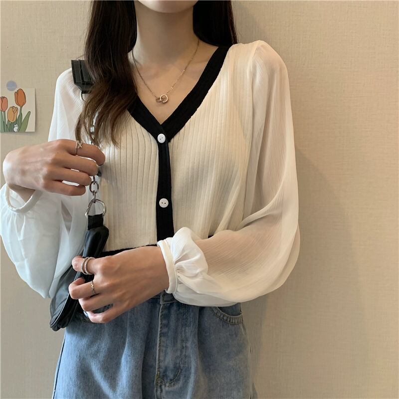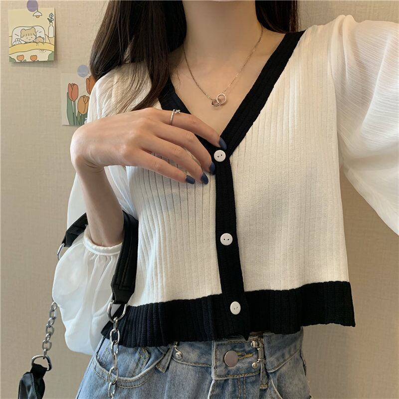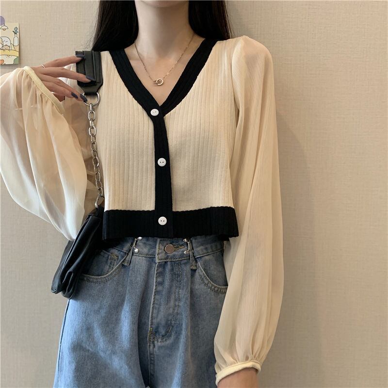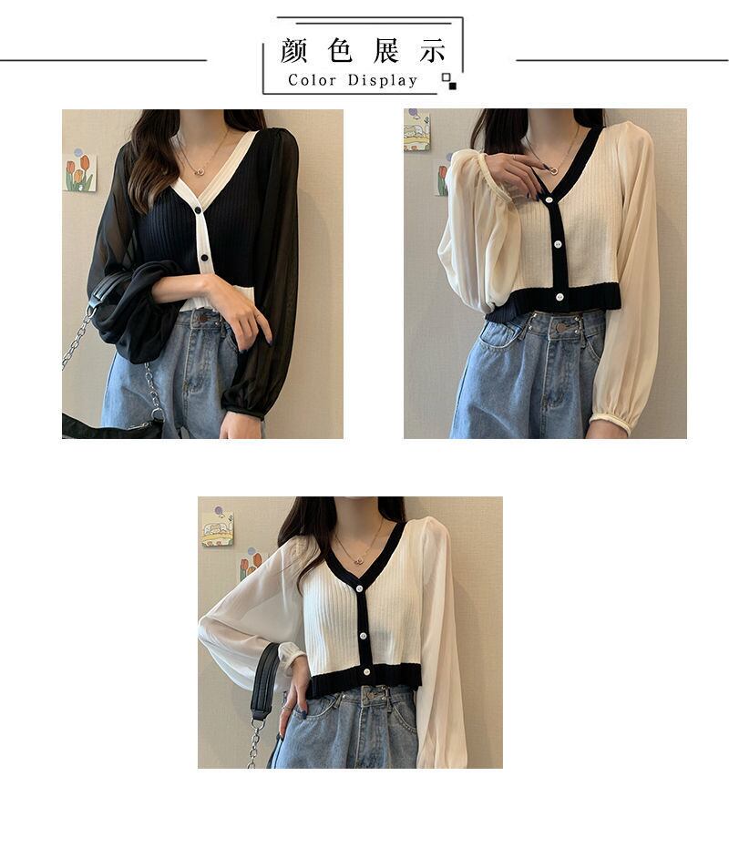 ニットカーディガンオータムスタイルTシャツ スリーブショートスリムVネックブラウス 秋物 YY-ファッション99514618795