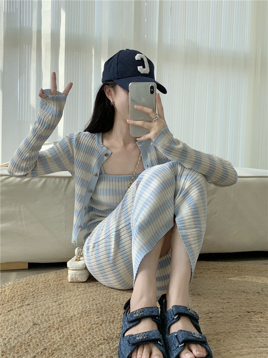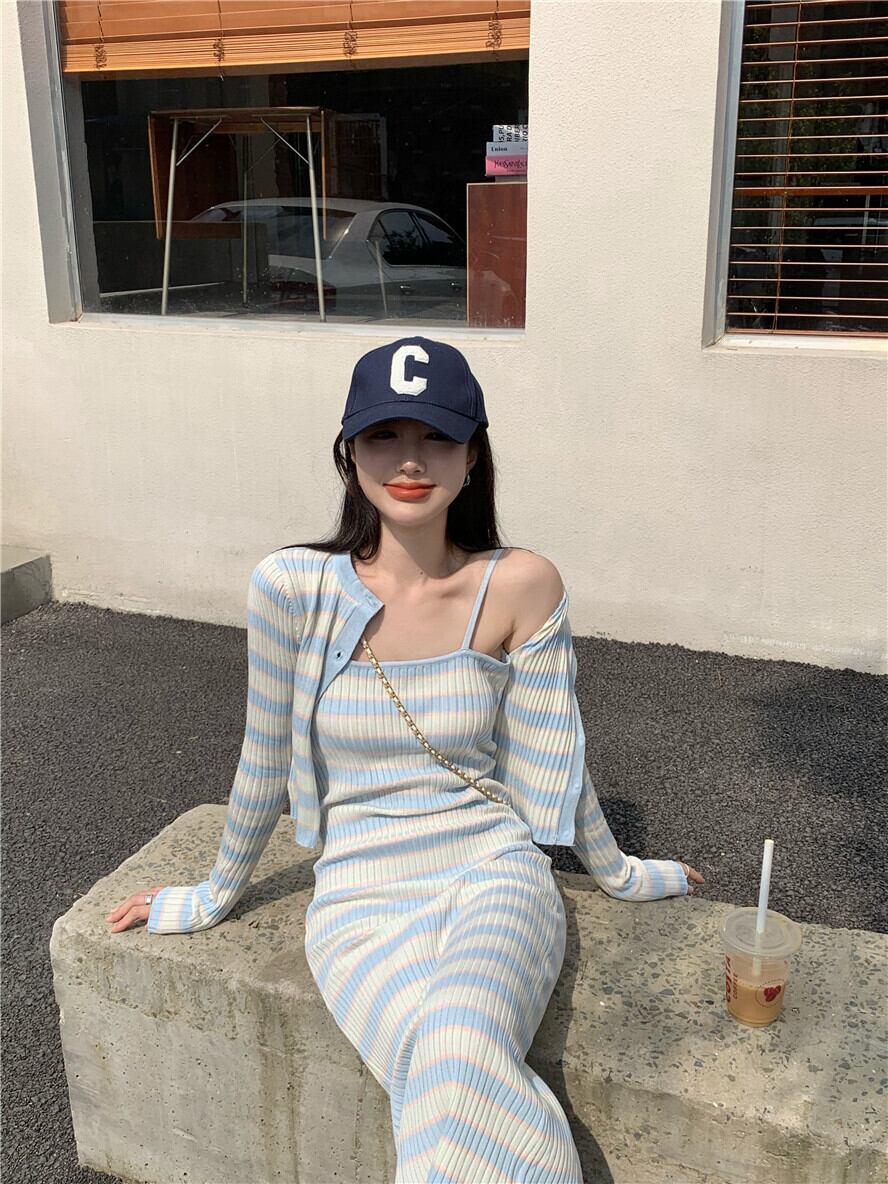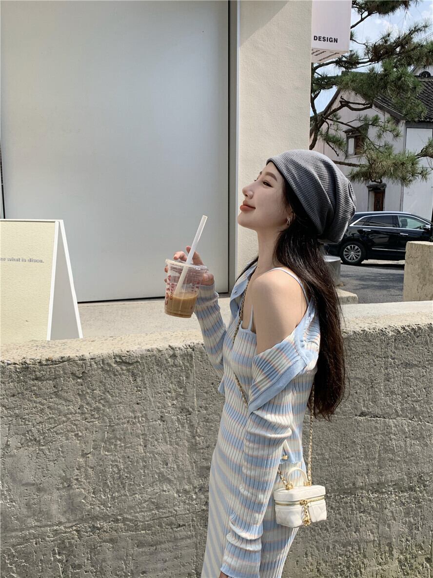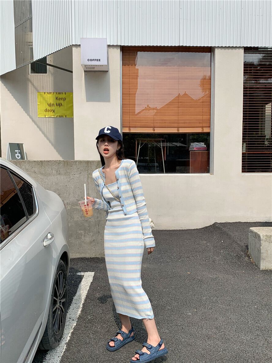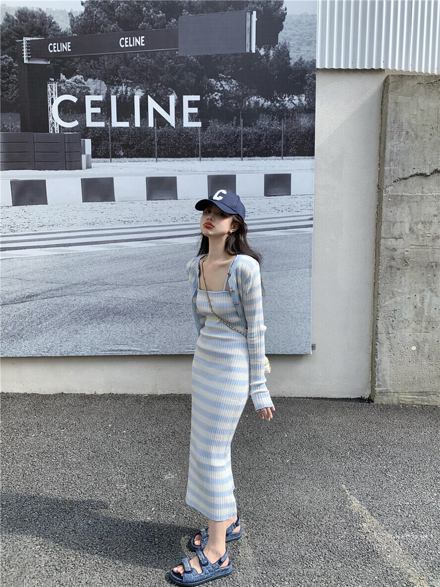 ストライプドレス オータムスカート ニット 秋物 YY-ファッション80052739512