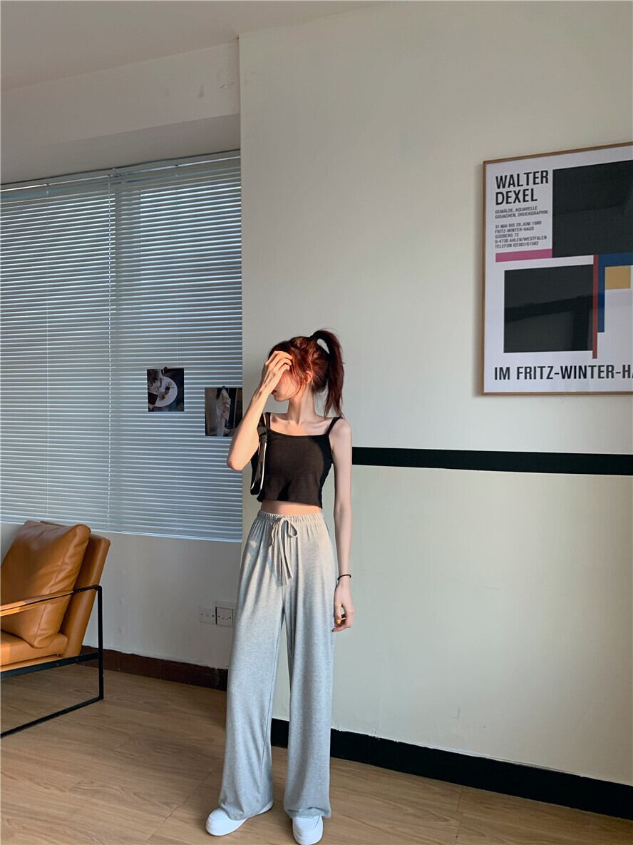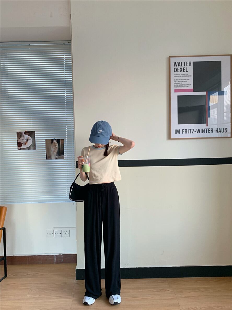 ウェストパンツ ルーズカジュアル薄手スプリングオータムブラック 春物 秋物 YY-ファッション16944867076