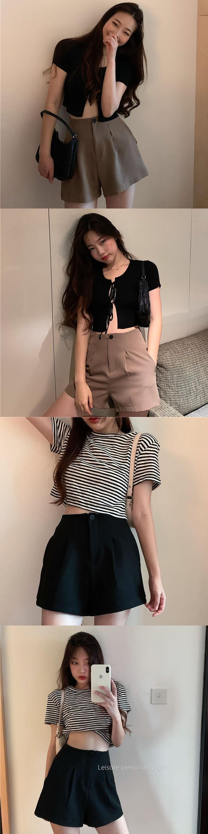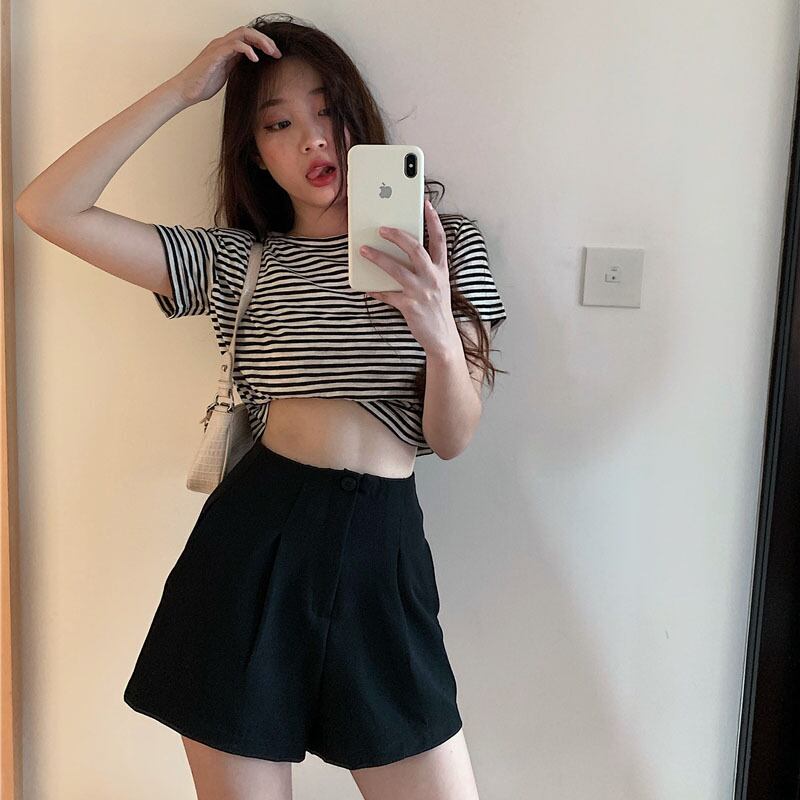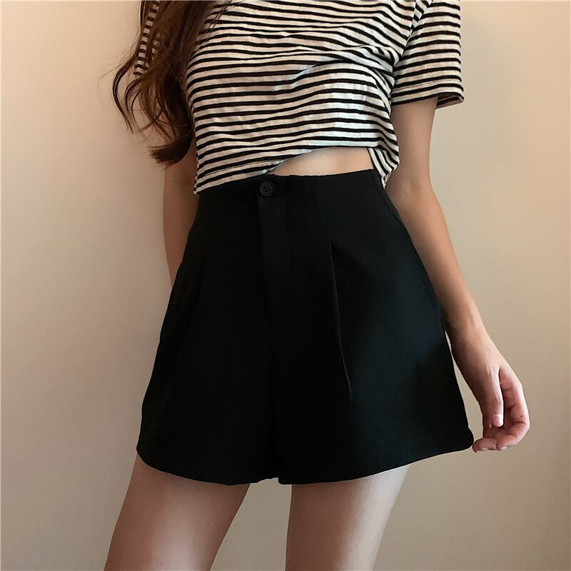 ブラックカジュアルパンツ スプリングオータム薄手ハイウェストショーツ ルーズ 春物 秋物 ブルマー YY-ファッション27777442973