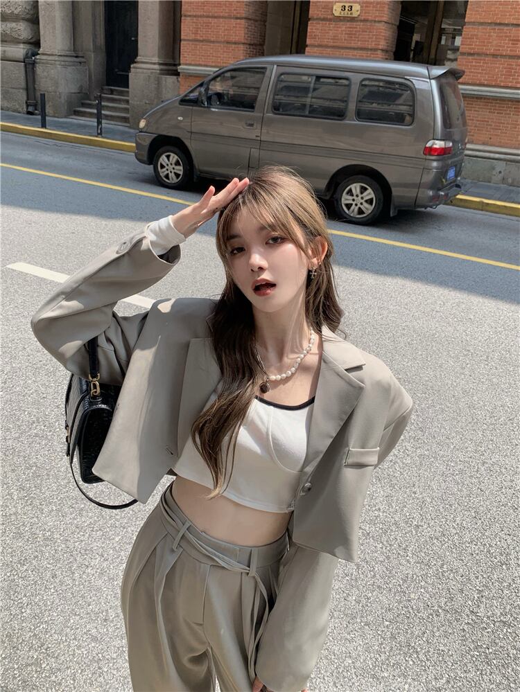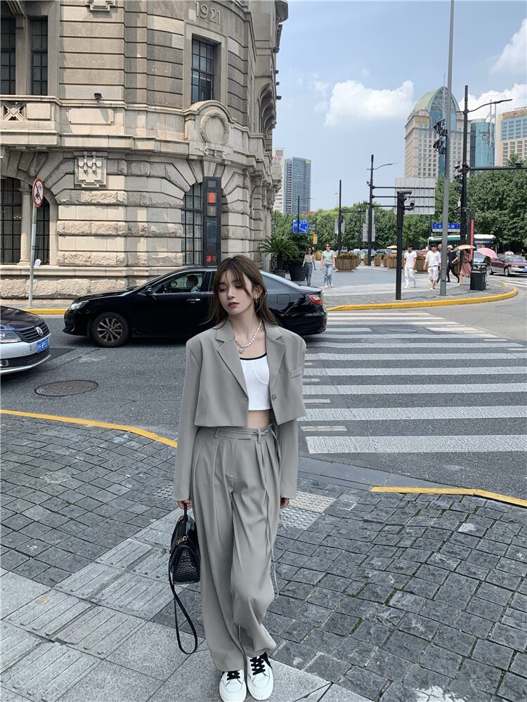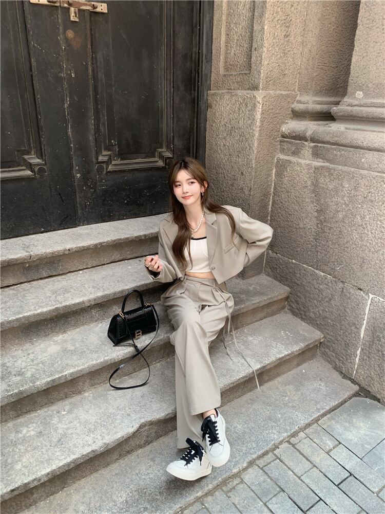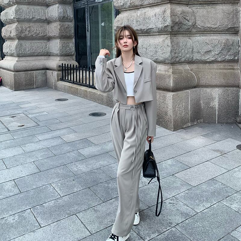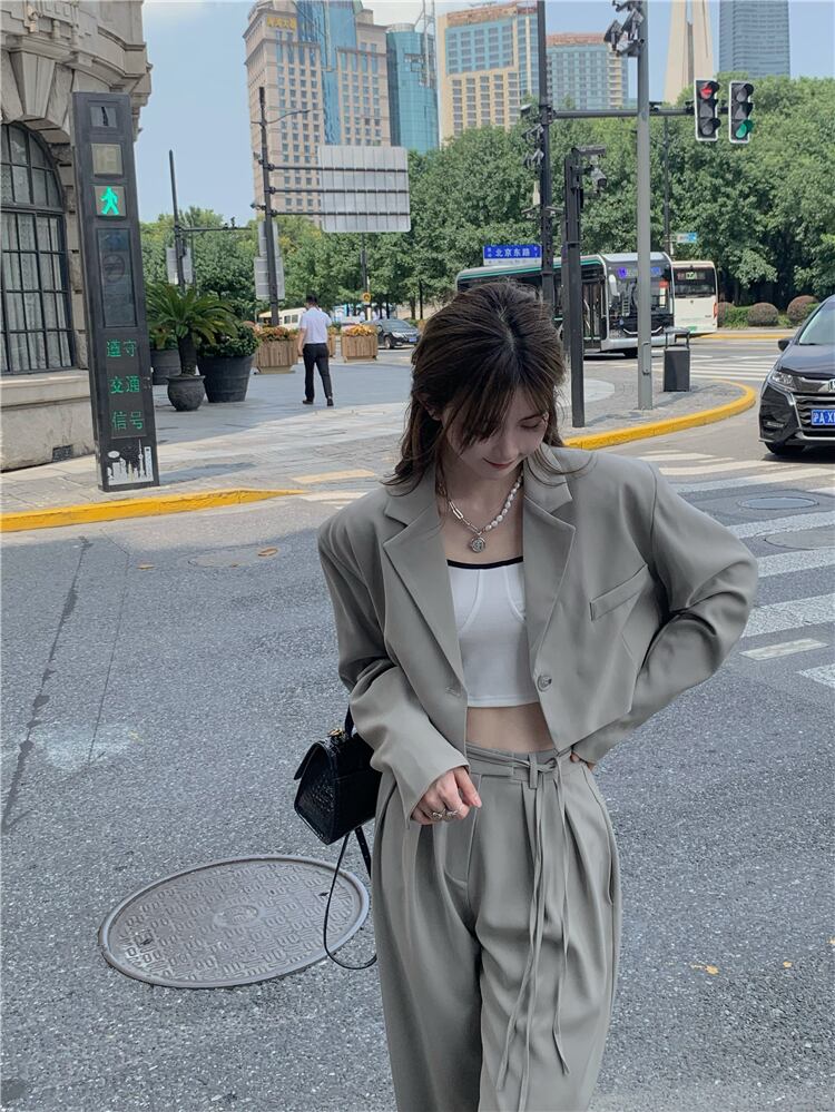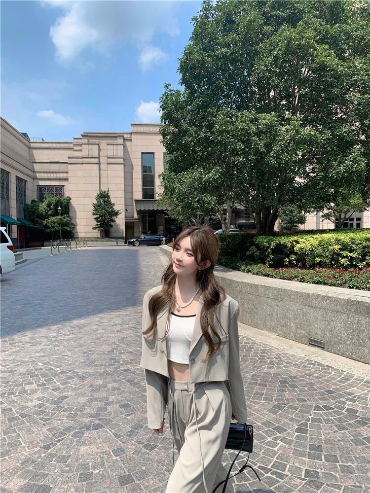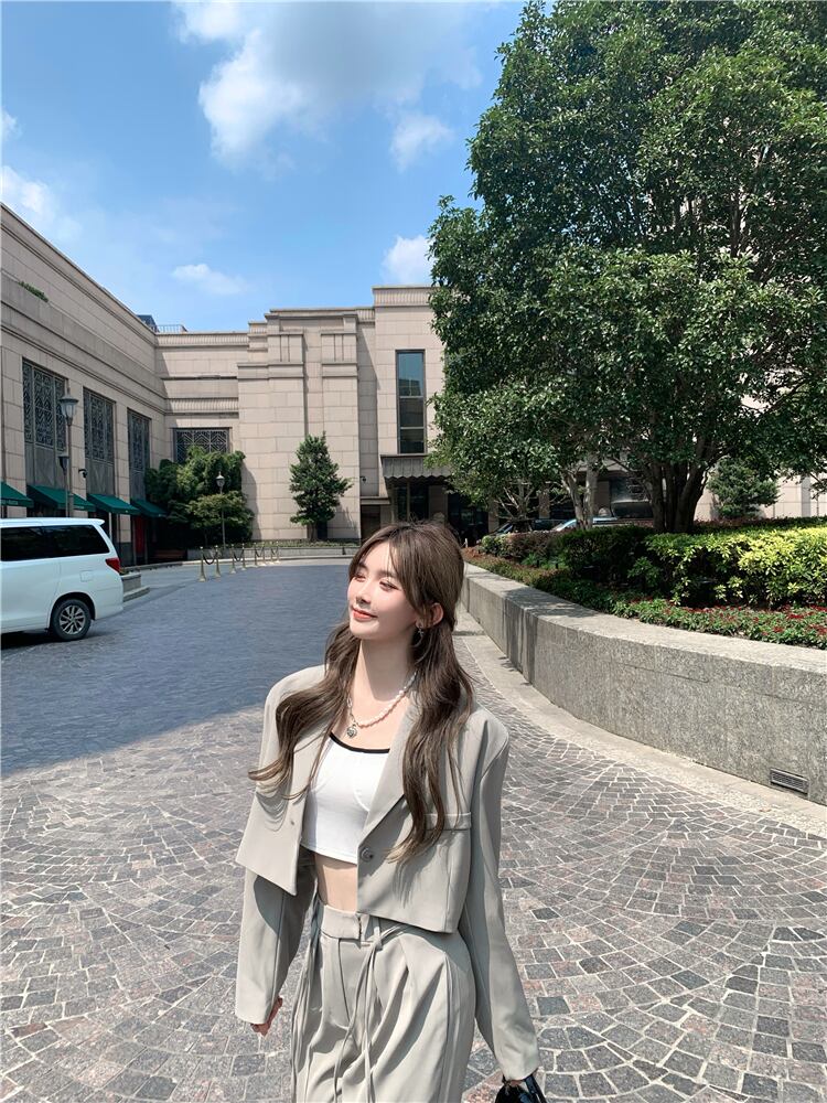 色:内側のTシャツ,プチスーツ,ワイドレッグパンツ
