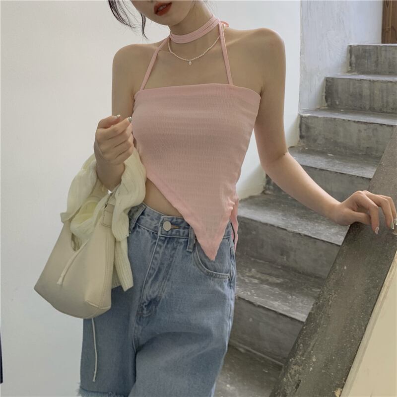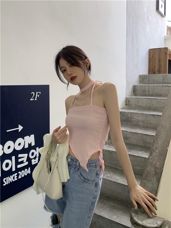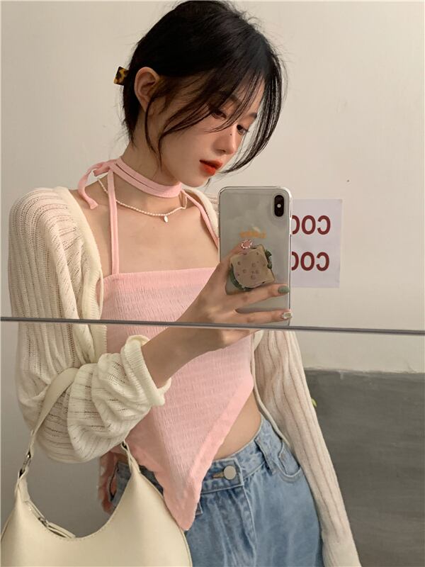 ホルターオータムショートトップス ピンク 大人ガーリー スウィート キュート カジュアル 秋物 YY-ファッション5473215852
