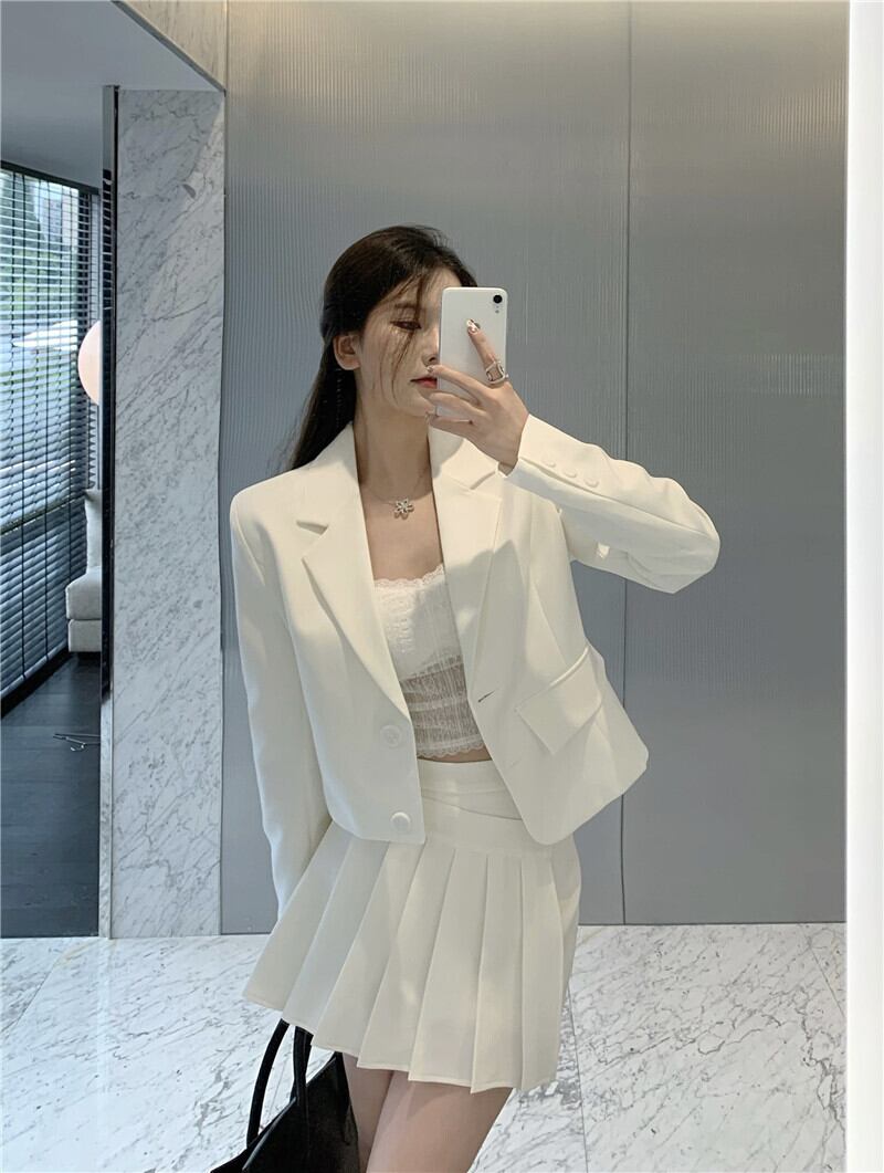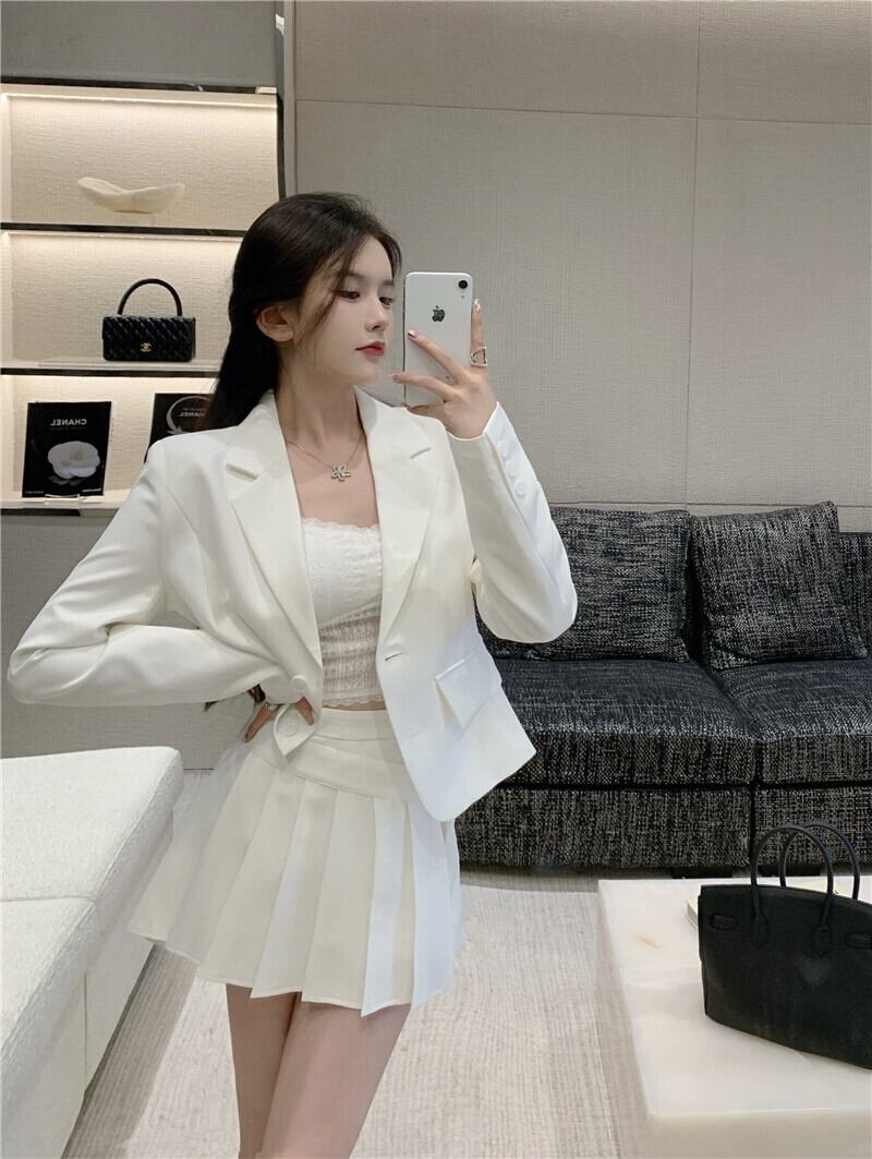 オータム長袖スリーブジャケット ウェストスカート プリーツツーピース セット ロング 秋物 YY-ファッション66074406651