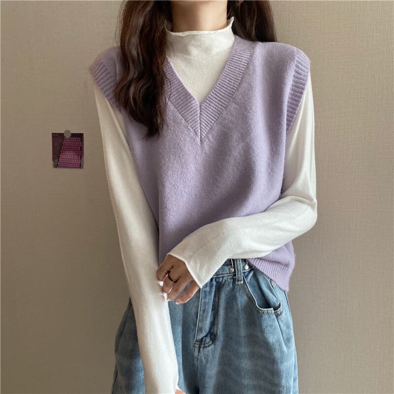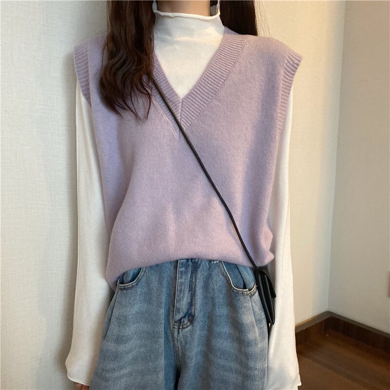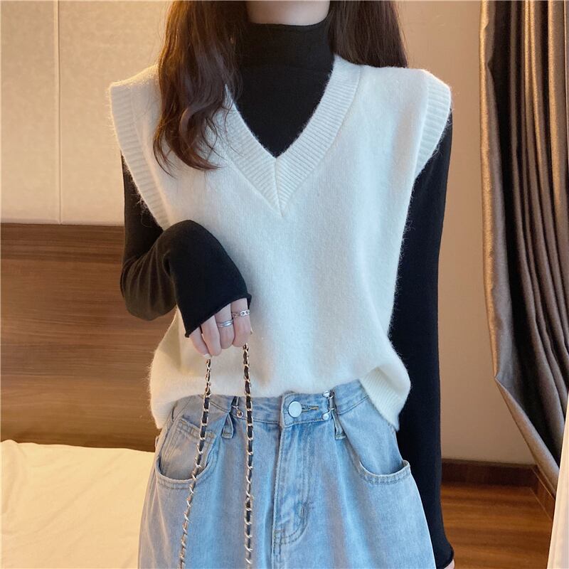 ホワイトVネックセーター スプリングオータムルーズトップス 春物 秋物 YY-ファッション70545667352