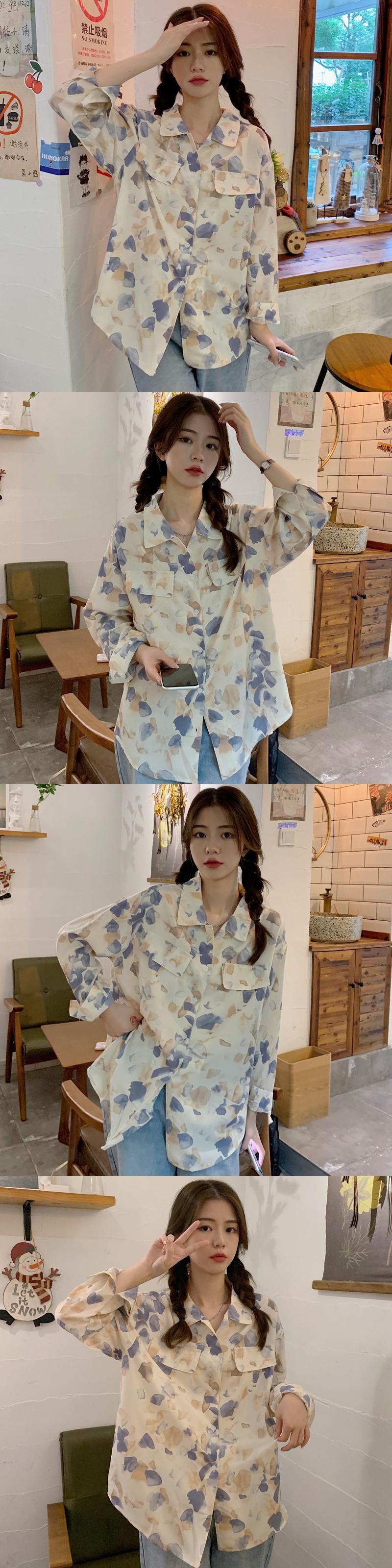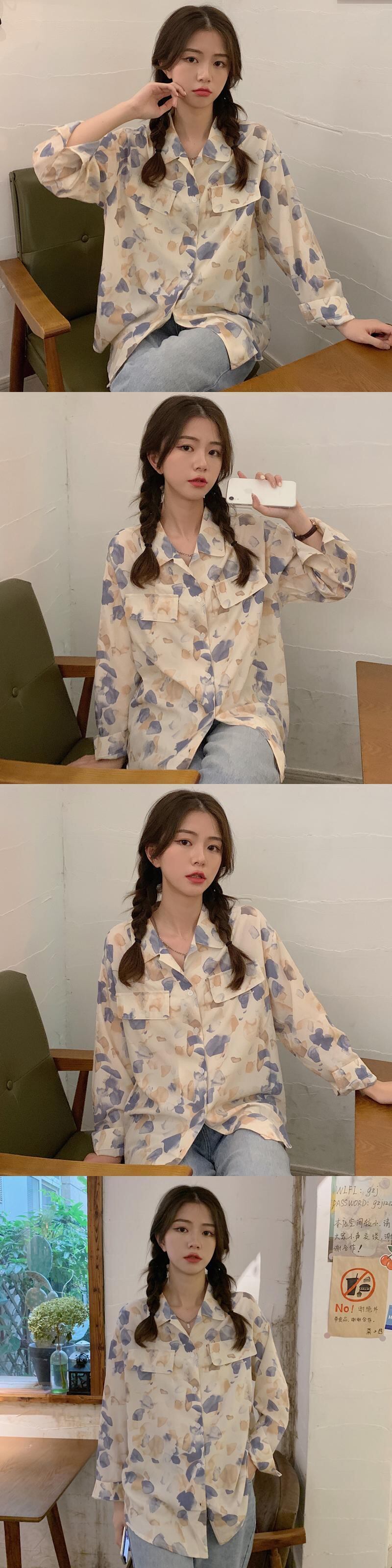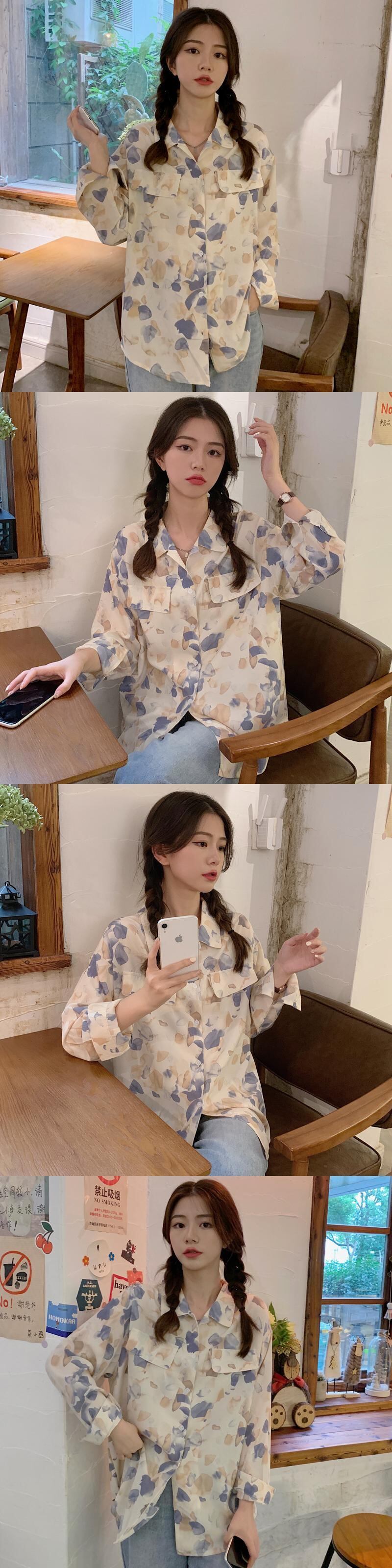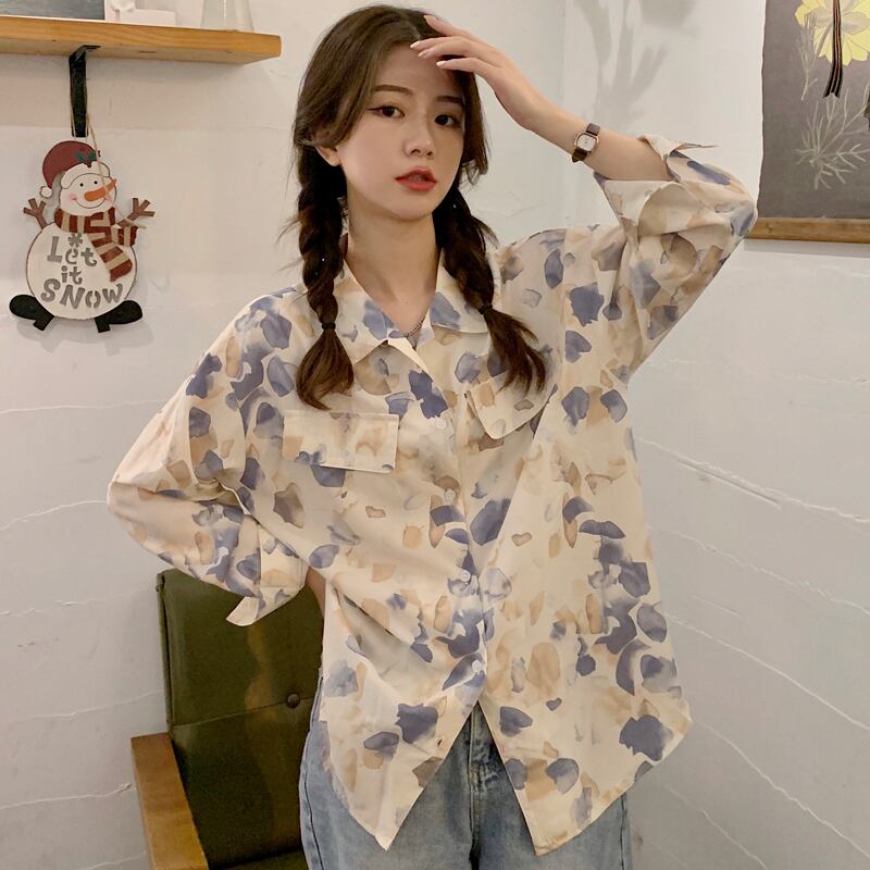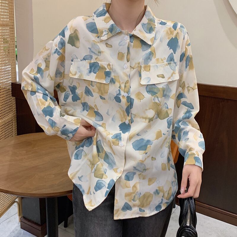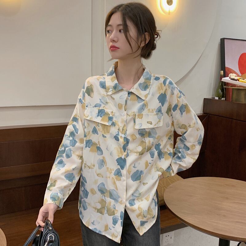 シャツ レディーススタンダードプリントオータムスタイル薄手ルーズ ロング レトロ 秋物 YY-ファッション22634210744