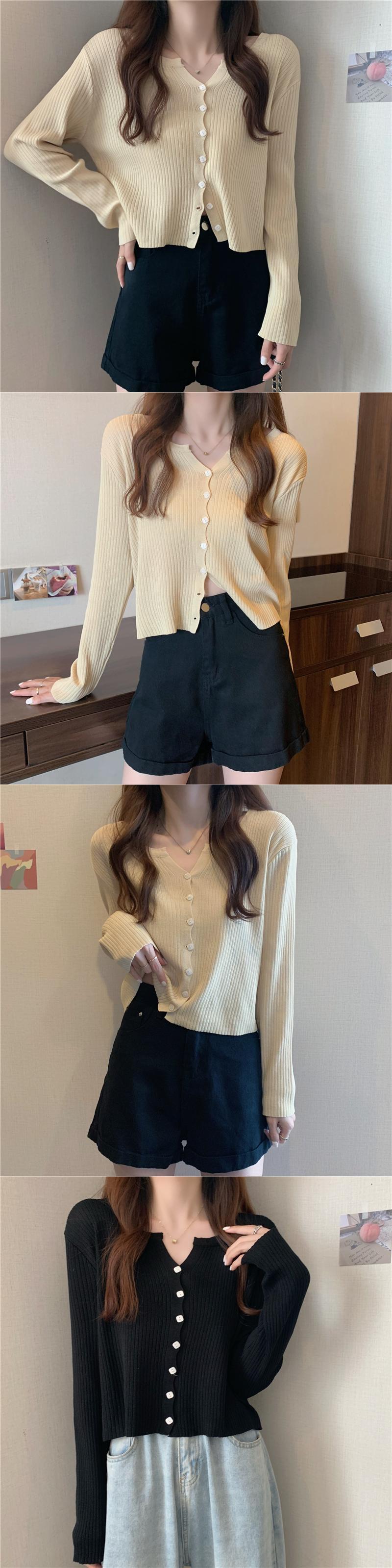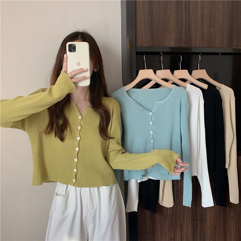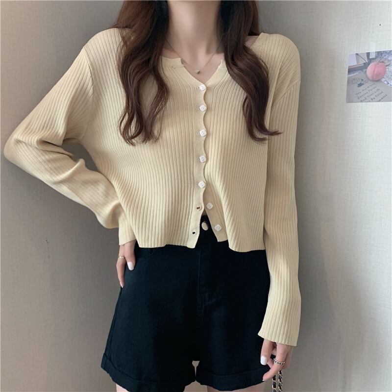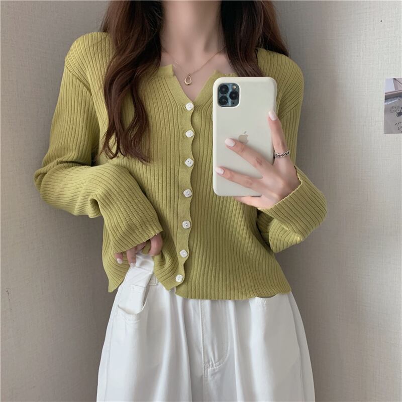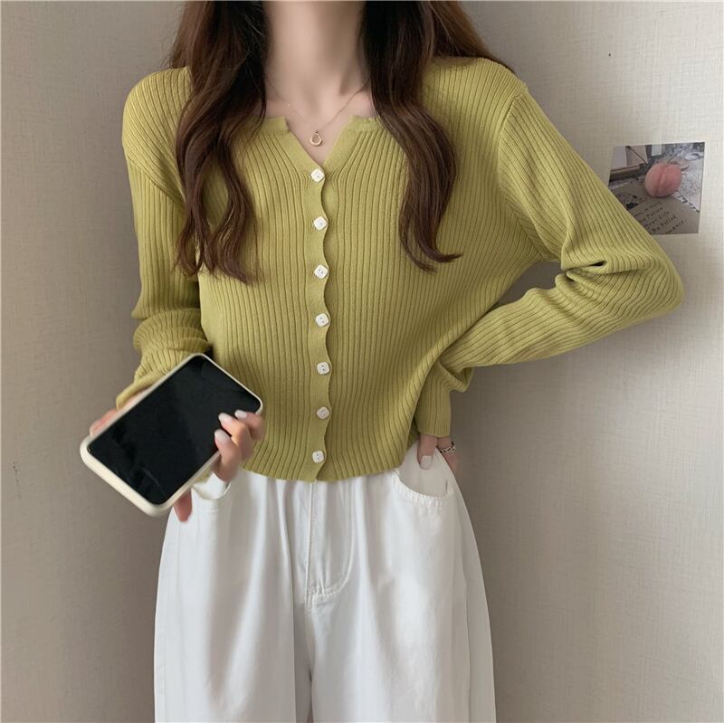 薄手Vネックセーター スプリングオータムスタイルカーディガンショートトップス 春物 秋物 YY-ファッション78063829691