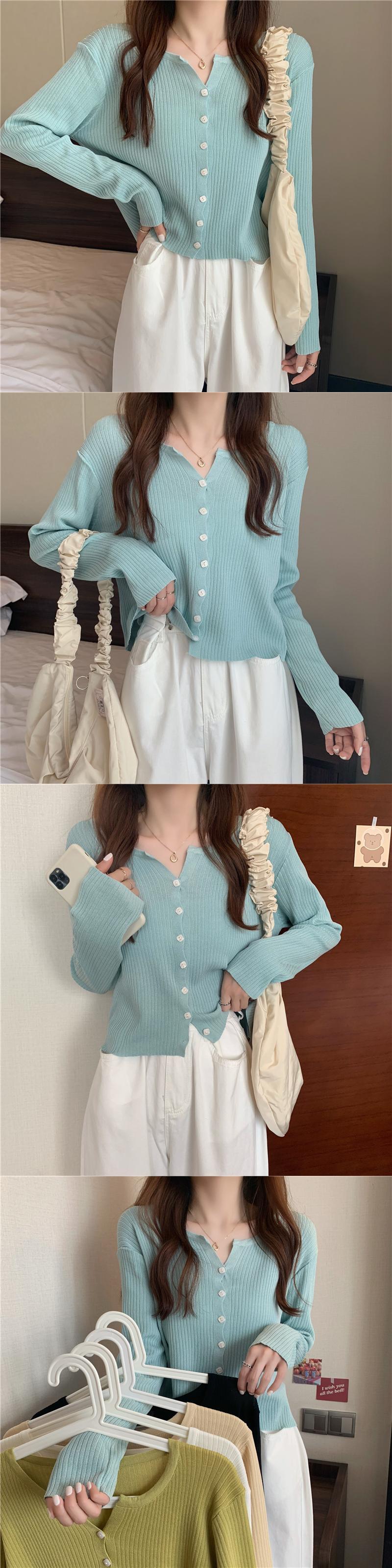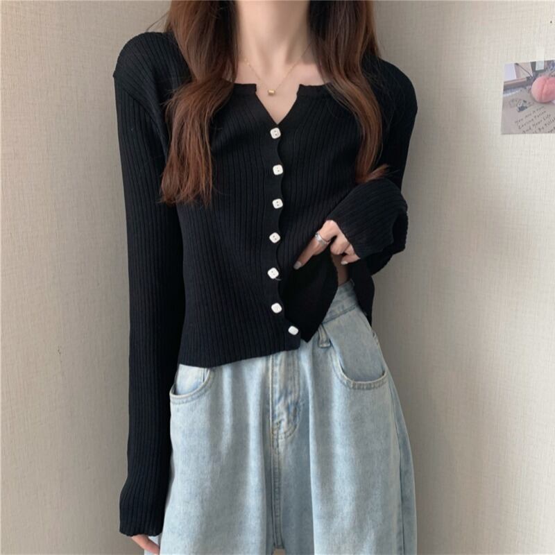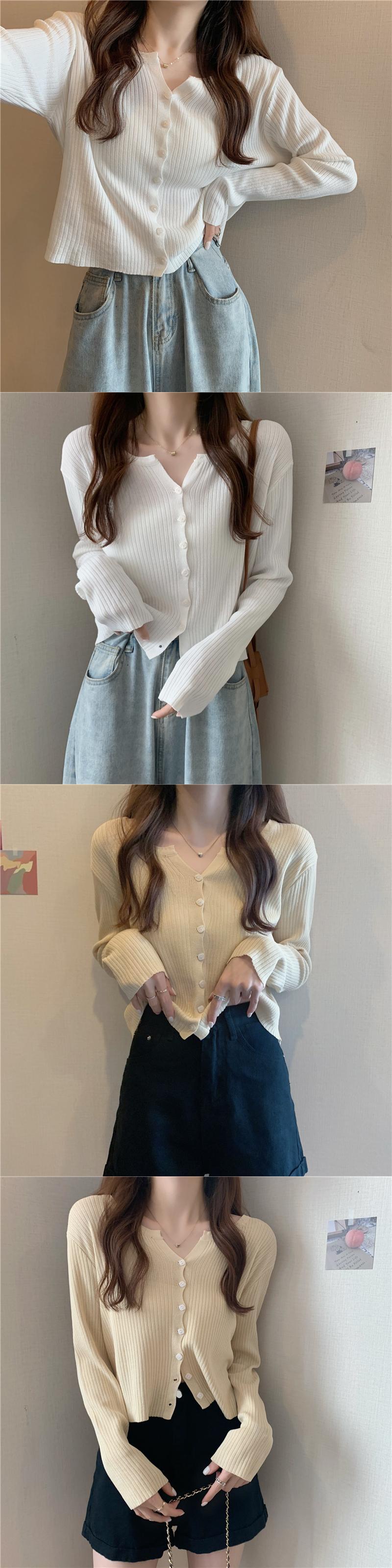 薄手Vネックセーター スプリングオータムスタイルカーディガンショートトップス 春物 秋物 YY-ファッション78063829691