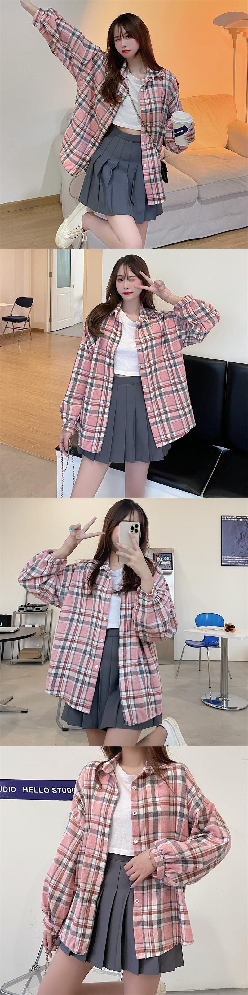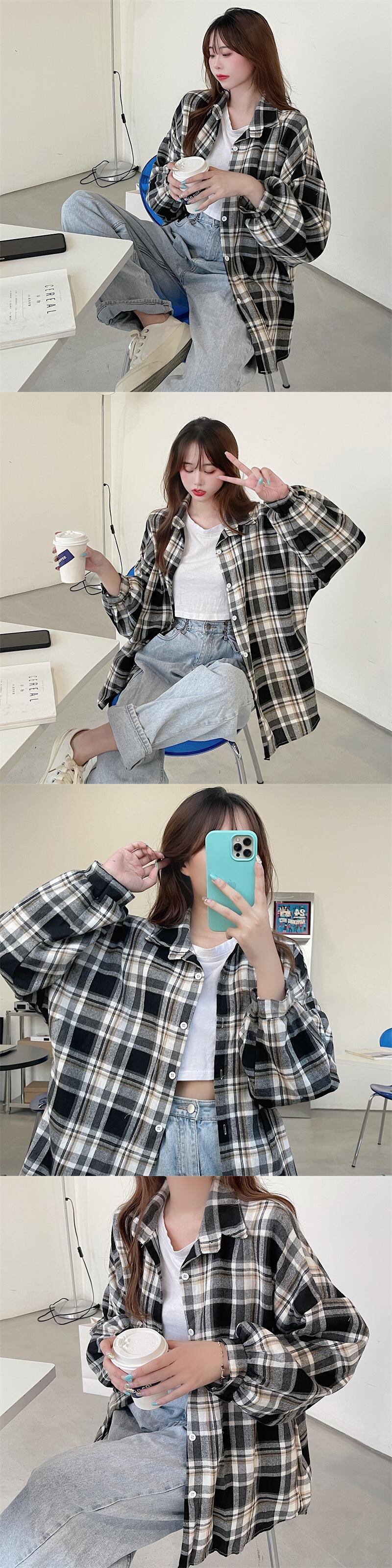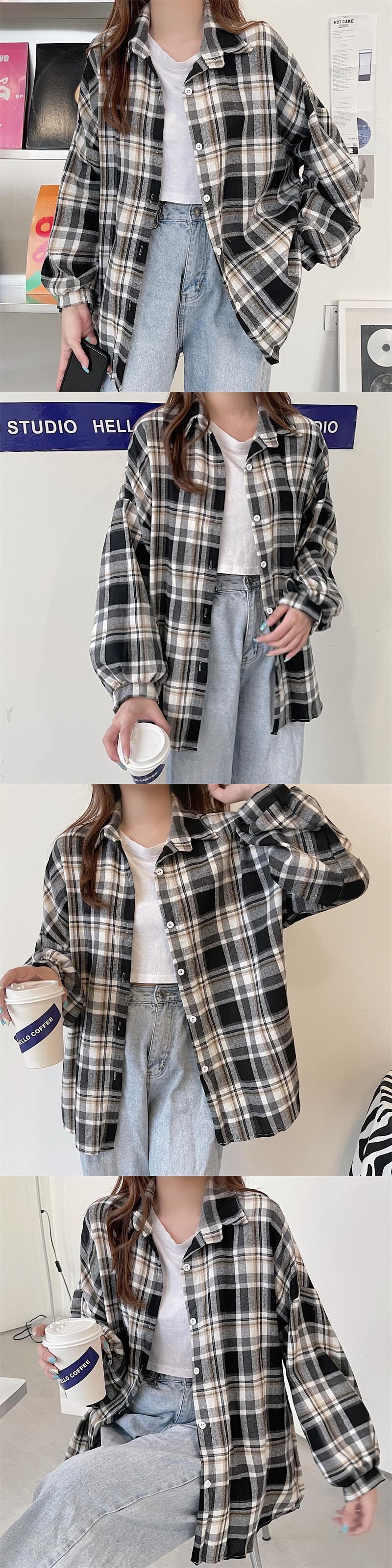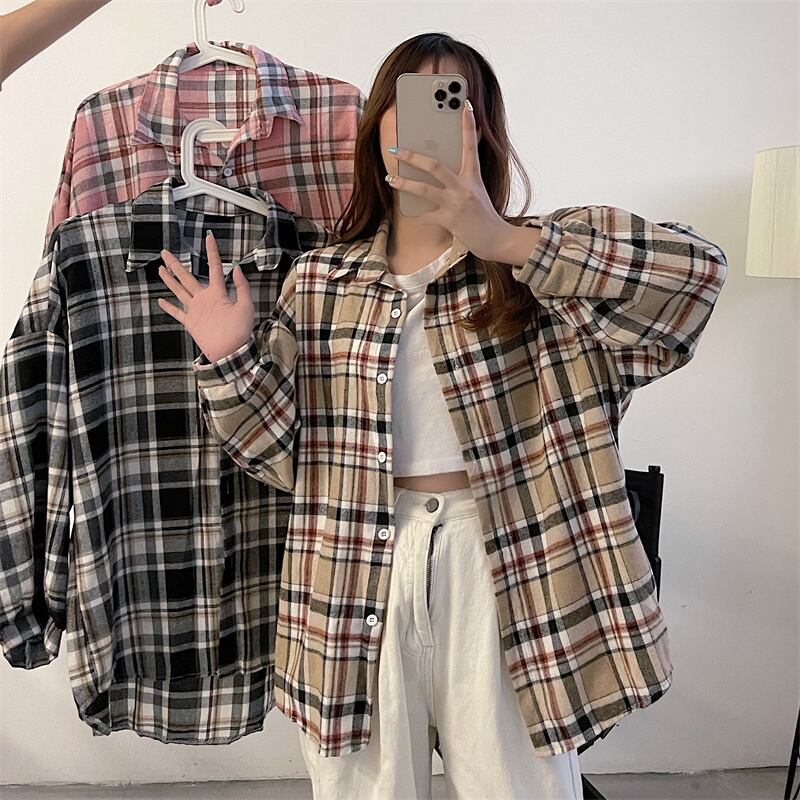 格子柄シャツ ブラウス オータムウィンタースタンダードスタイルルーズ ロング レトロ 秋物 冬物 YY-ファッション23209710179