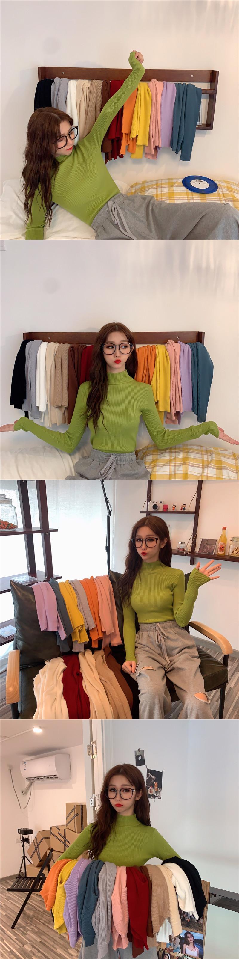 プルオーバー ソリッド カラーニットシャツ トップス オータム ロング 秋物 ソリッドカラー YY-ファッション36627670421