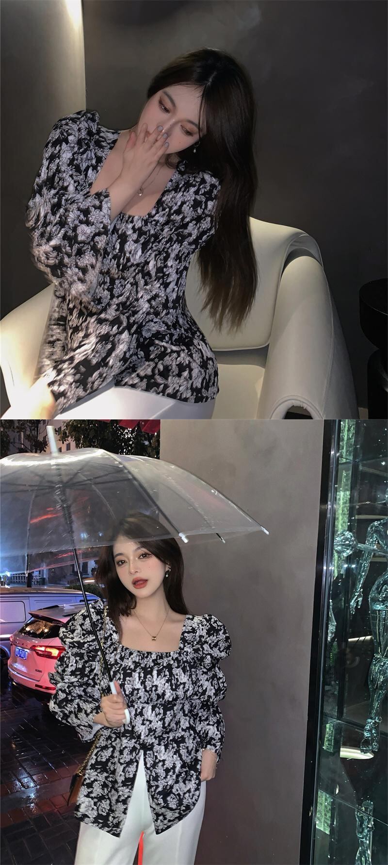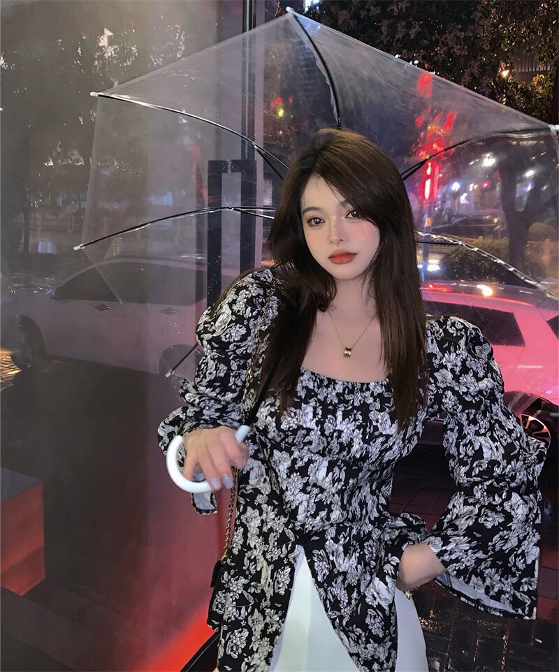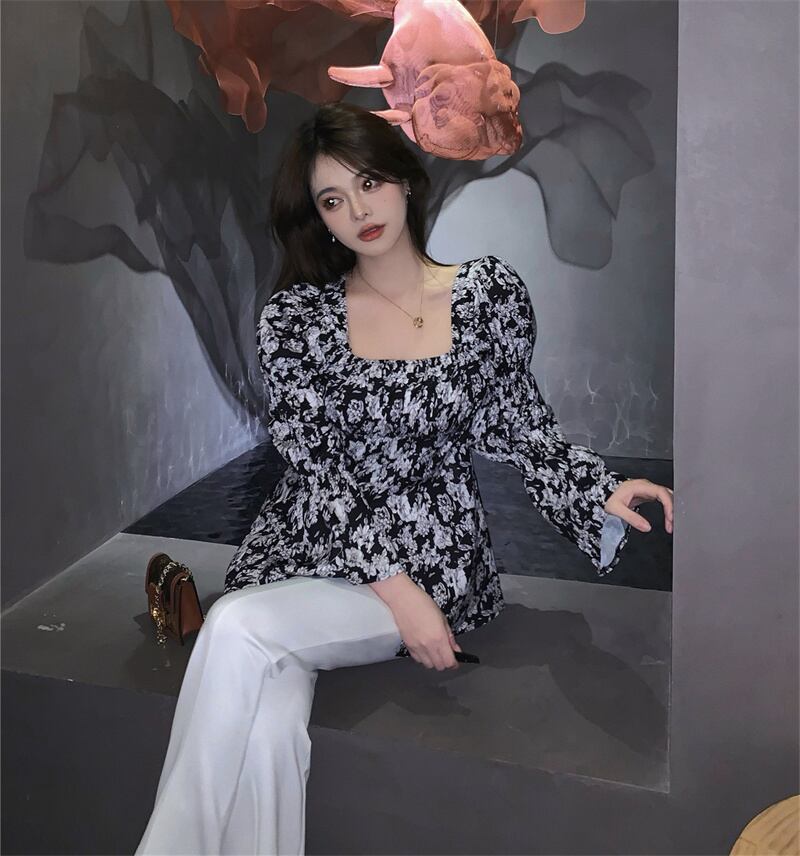 薄手スタンダードフローラルブラウス オータム長袖スリーブシフォンシャツ ロング レトロ 大人ガーリー スウィート キュート カジュアル 秋物 花柄 スクウェア YY-ファッション74440533080