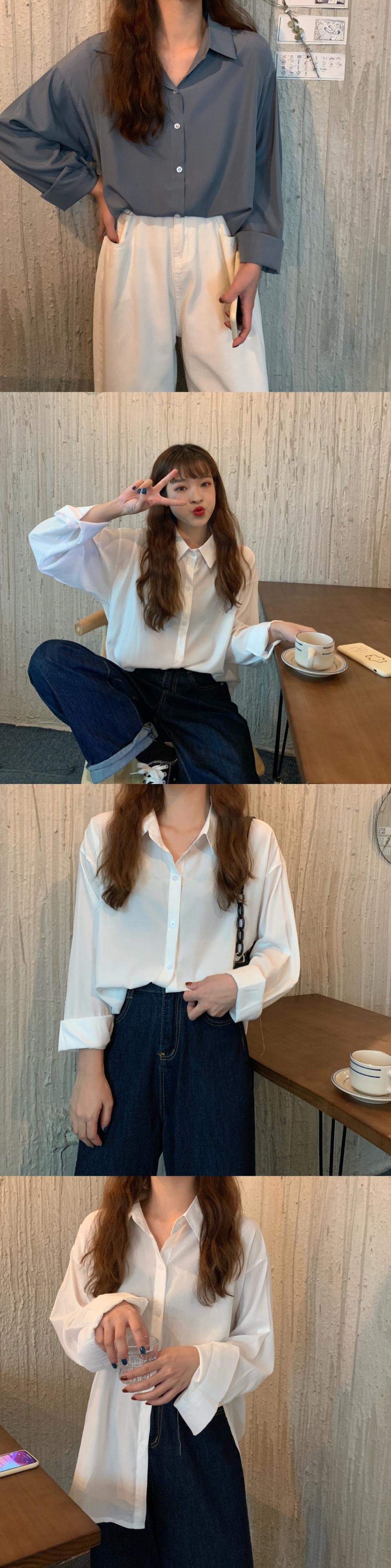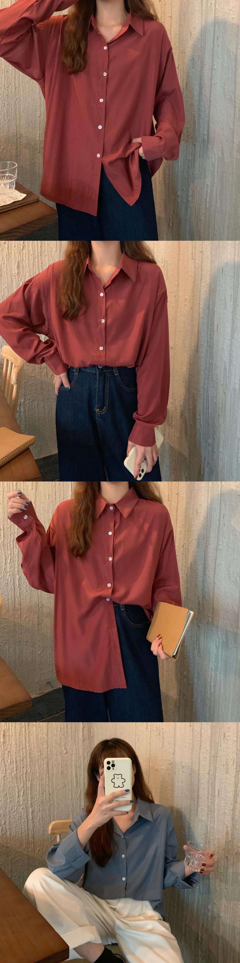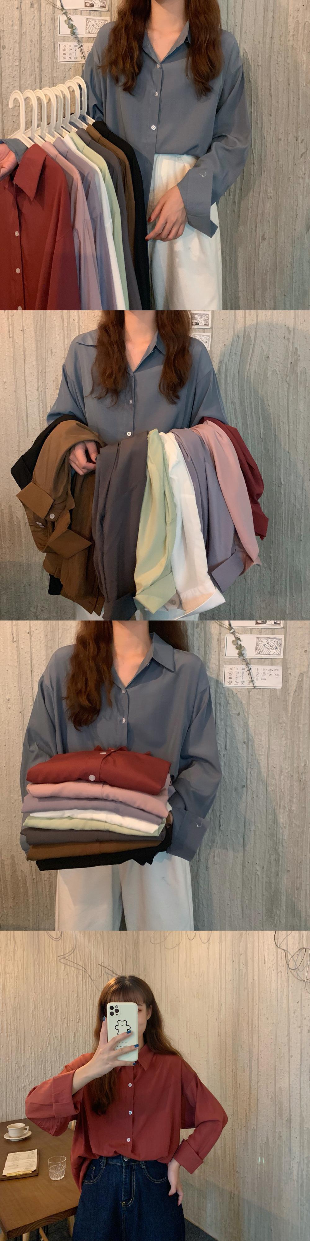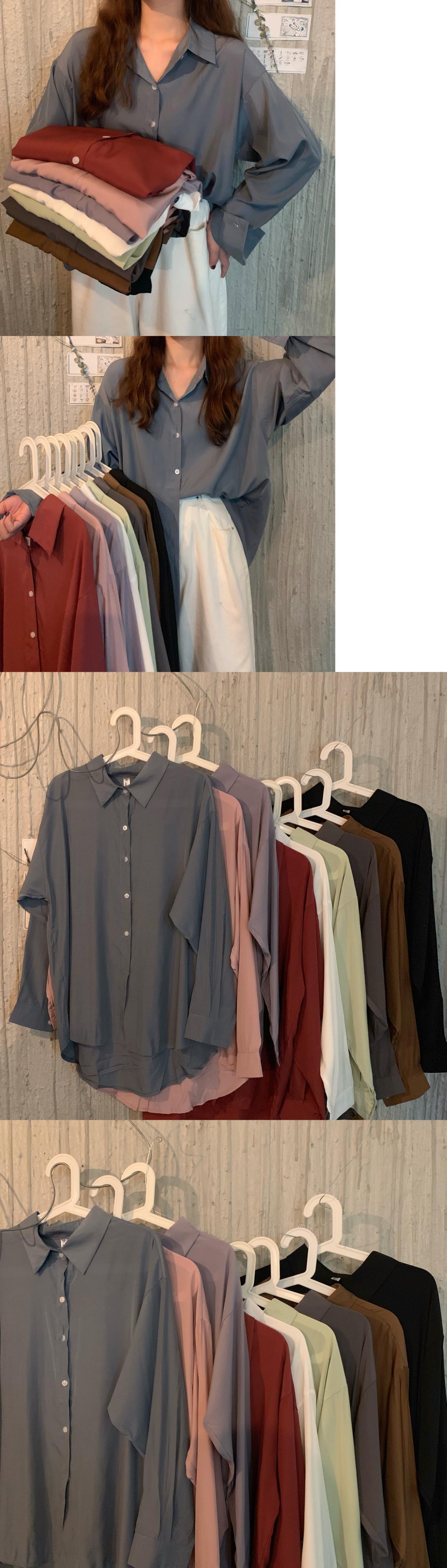 オータムスタンダードカラールーズシャツ レディース ロング レトロ 秋物 YY-ファッション40434600102