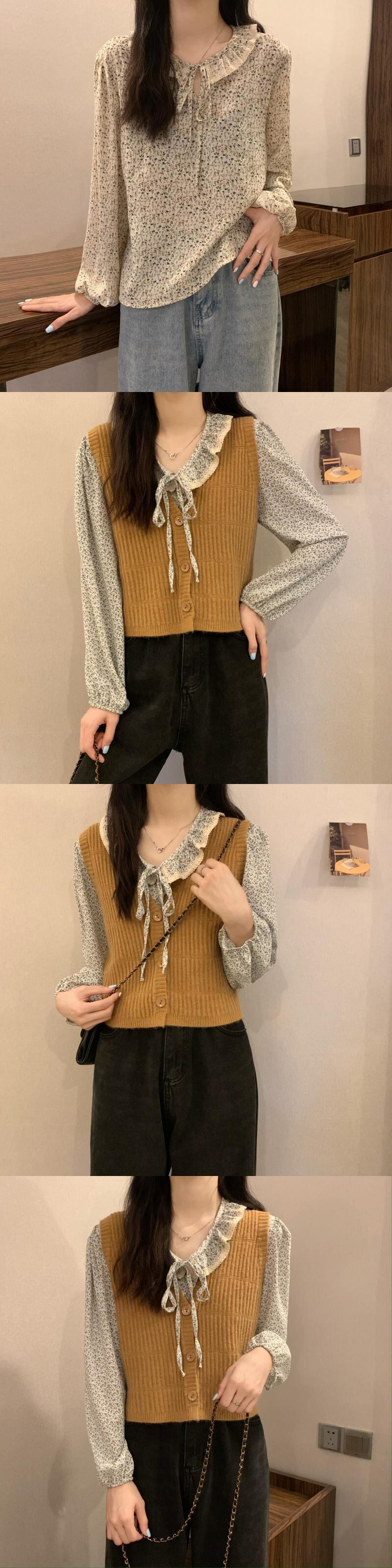 色:黄色のベスト,青いベスト,コーヒーベスト,アプリコットベスト,スカイブルーのシフォンシャツ,ダークブルーのシフォンシャツ,ブラックシフォンシャツ,ベージュシフォンシャツ