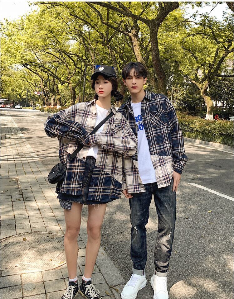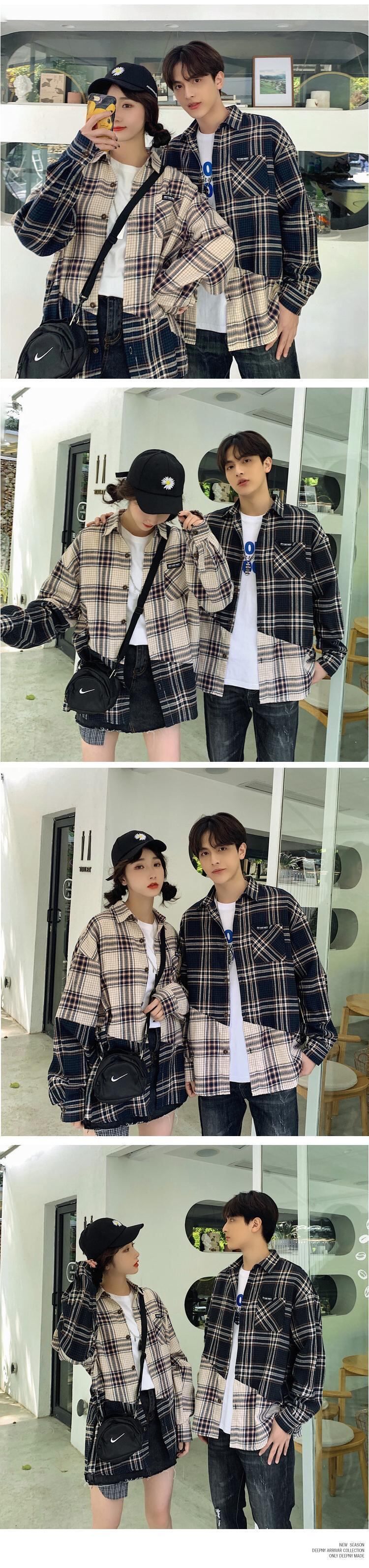 格子柄シャツ スプリングオータムシャツジャケット ロング 春物 秋物 YY-ファッション21562095036