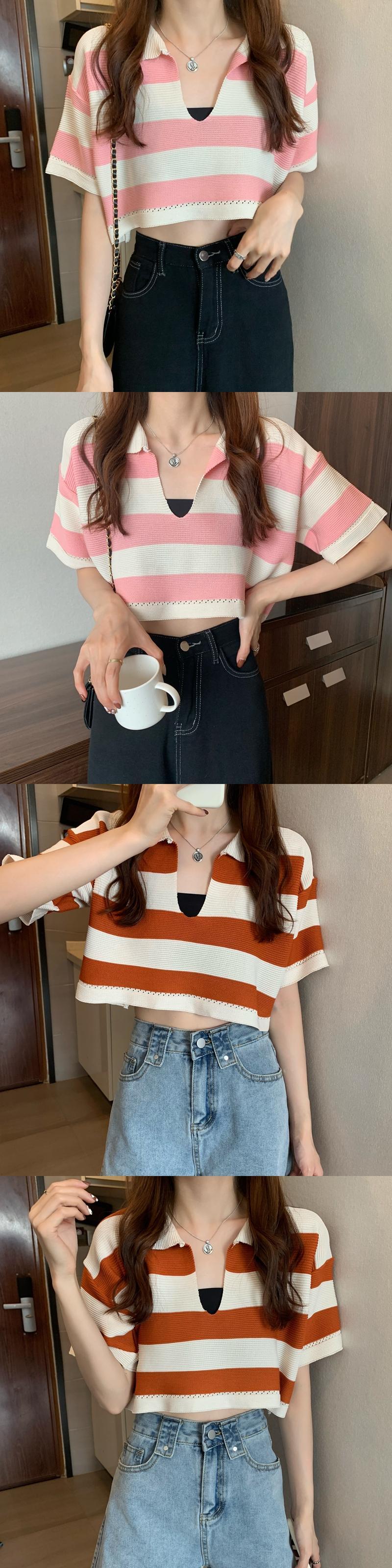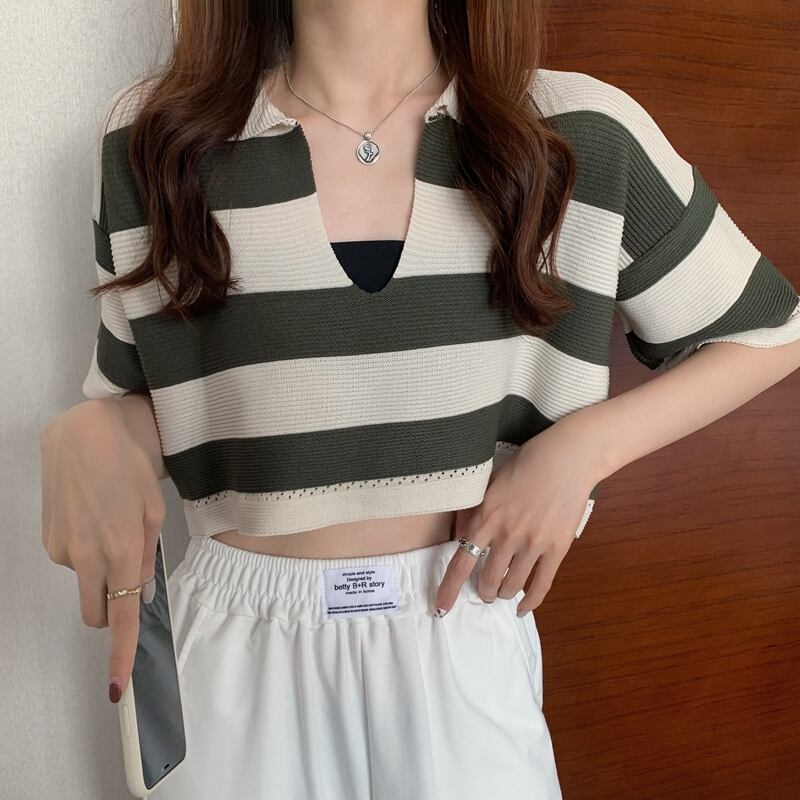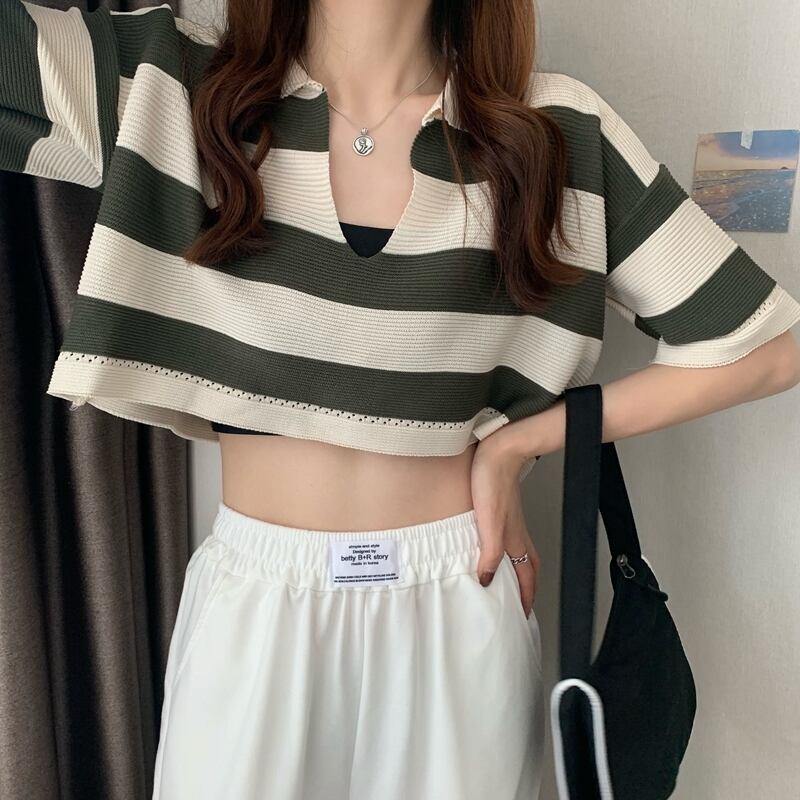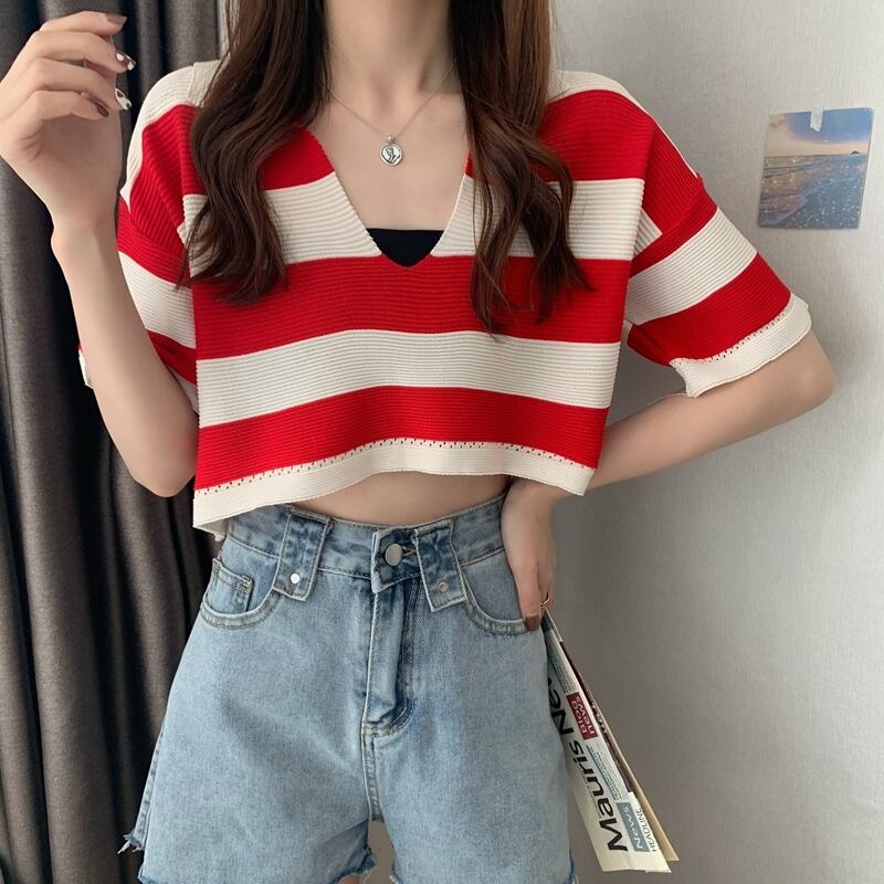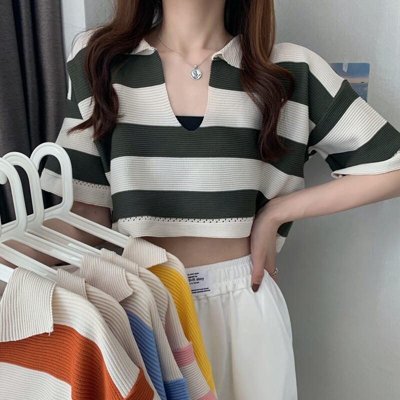 ルーズストライプセーター ショートTシャツ トップス シルク YY-ファッション47543862137