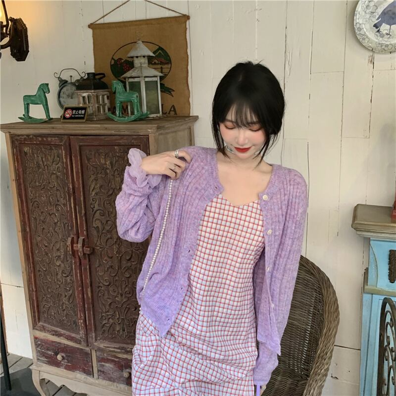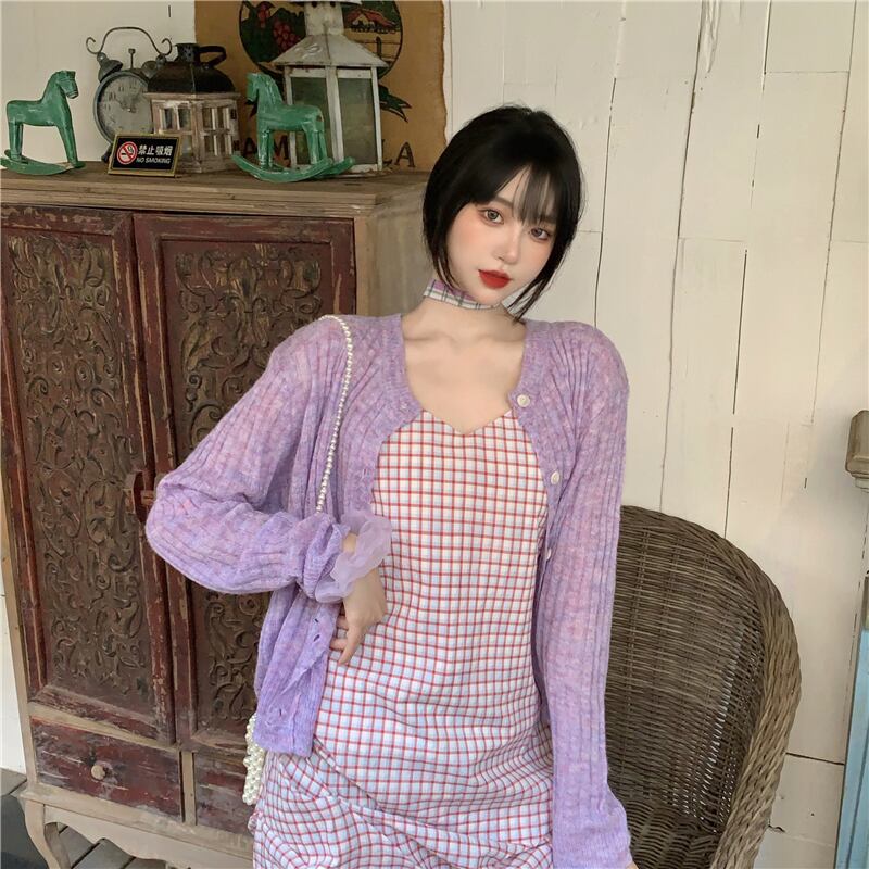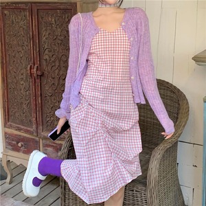 オータム薄手ニットカーディガントップス 格子柄ドレス 大人ガーリー スウィート キュート カジュアル 秋物 YY-ファッション67742244913