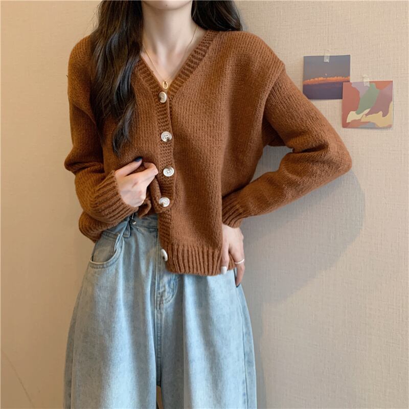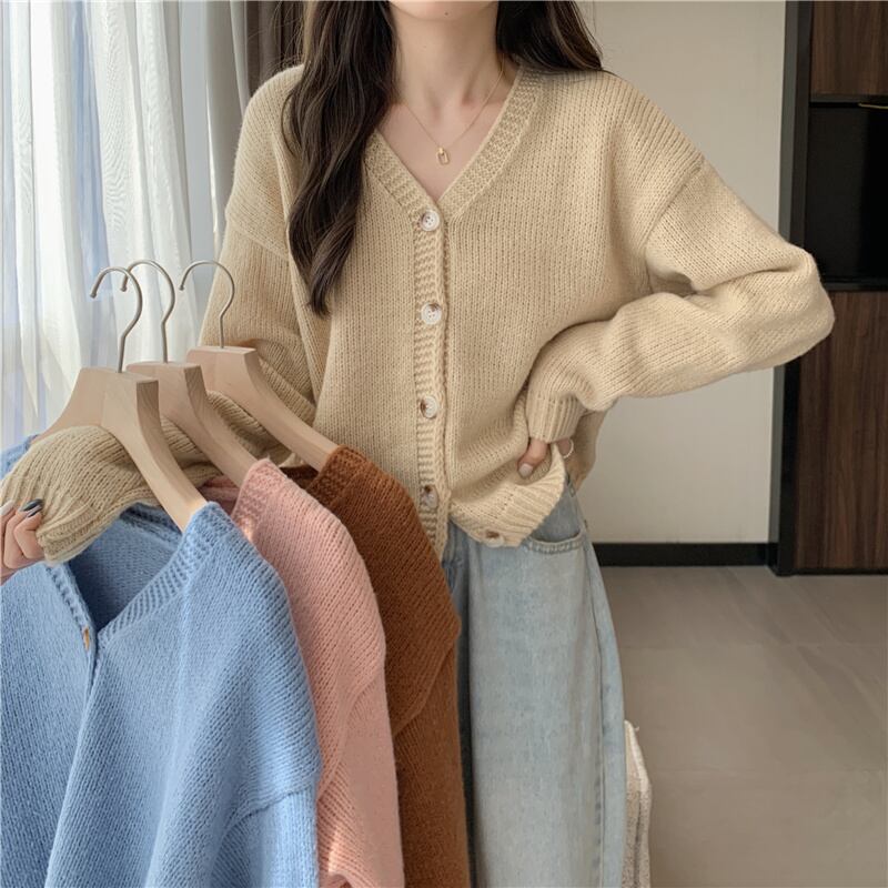 オータムトップス セーター Vネックルーズ薄手ニットカーディガンジャケット 秋物 YY-ファッション2352448676