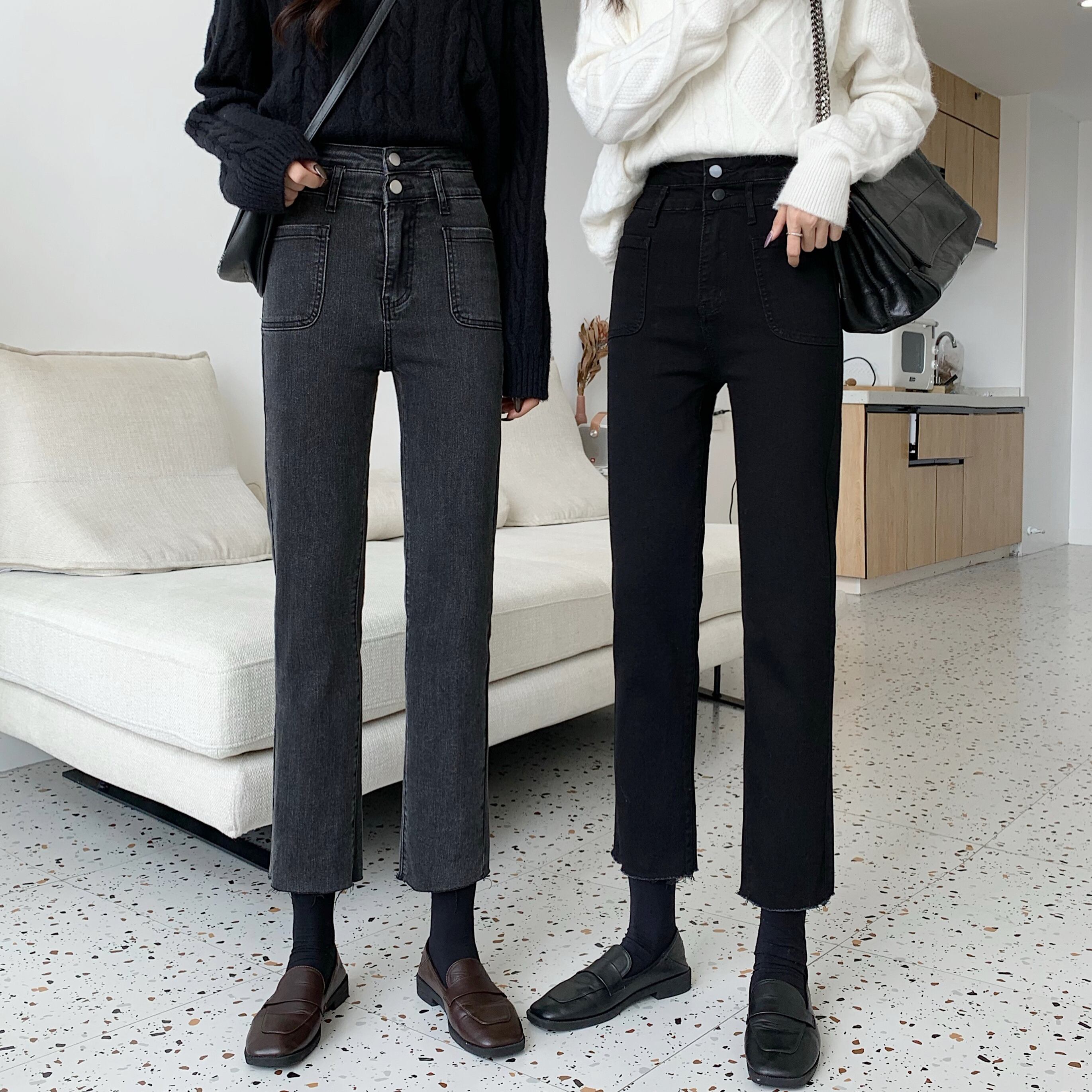 ブラックジーンズ パンツ オータムハイウェスト薄手 秋物 YY-ファッション60211833907