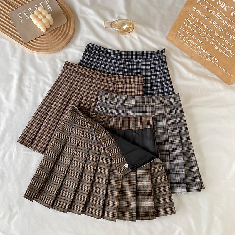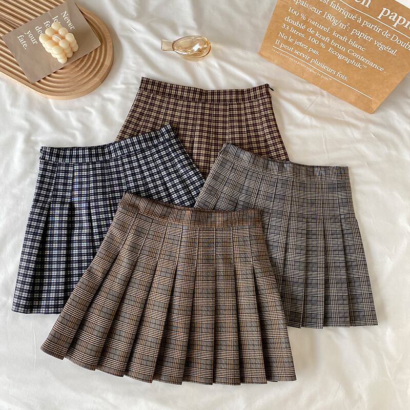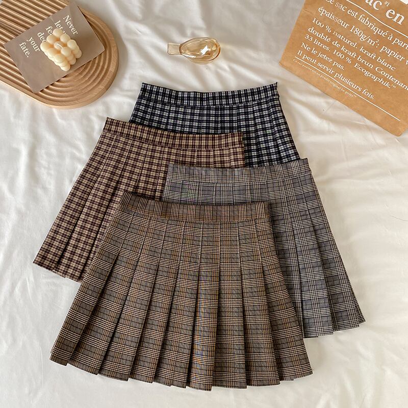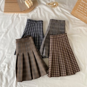 プリーツスカート Aラインハイウェストウェスト薄手オータムスタイル格子柄ショート 秋物 YY-ファッション92209551256