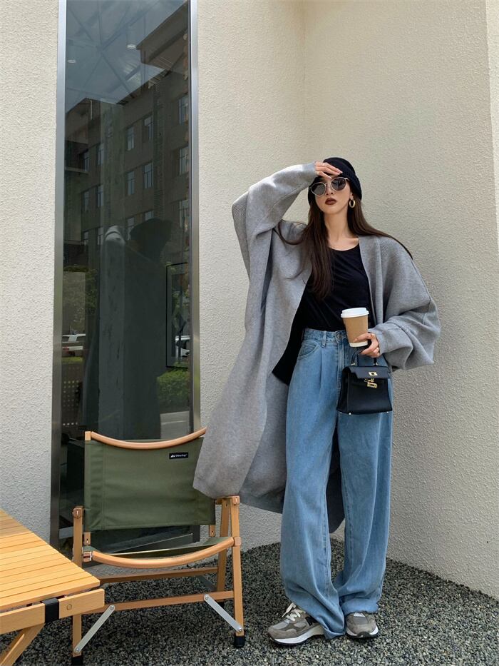 スタイルニットカーディガンルーズジャケット オータムウィンターカジュアルトップス ロング ストリート 秋物 冬物 YY-ファッション77999198435