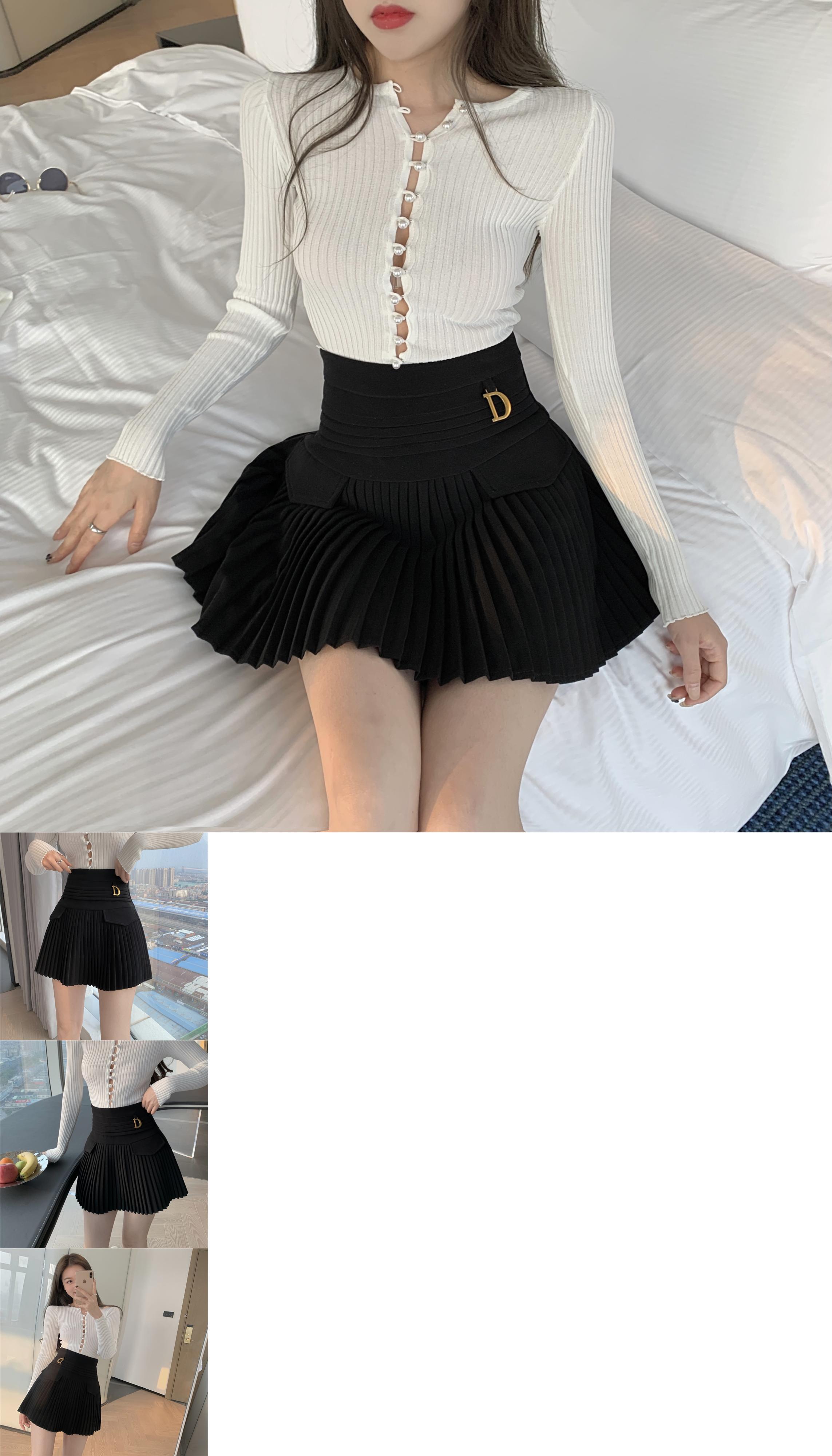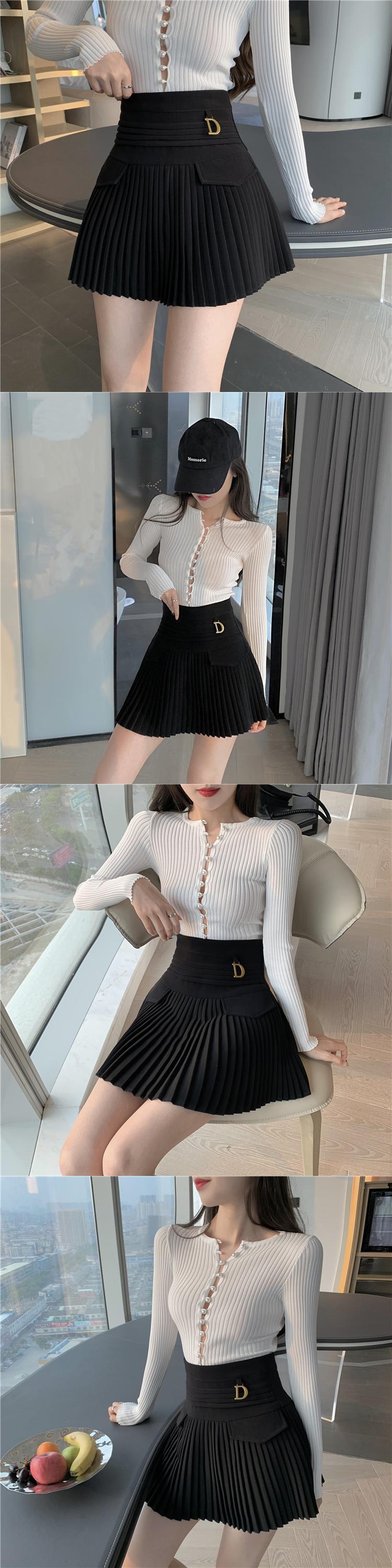 Aラインショートスカート ハイウェストウェスト薄手プリーツオータムホワイト 秋物 YY-ファッション76858140762
