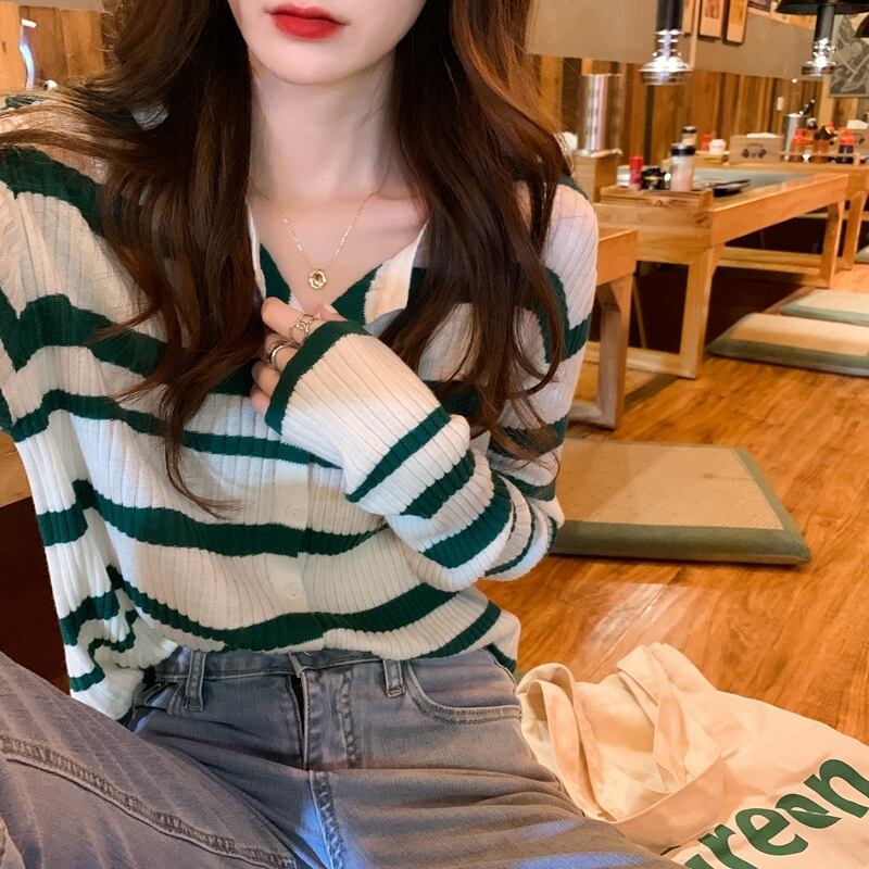 オータム薄手ストライプカーディガンニットセーター コート トップス ロング 秋物 YY-ファッション94298226405