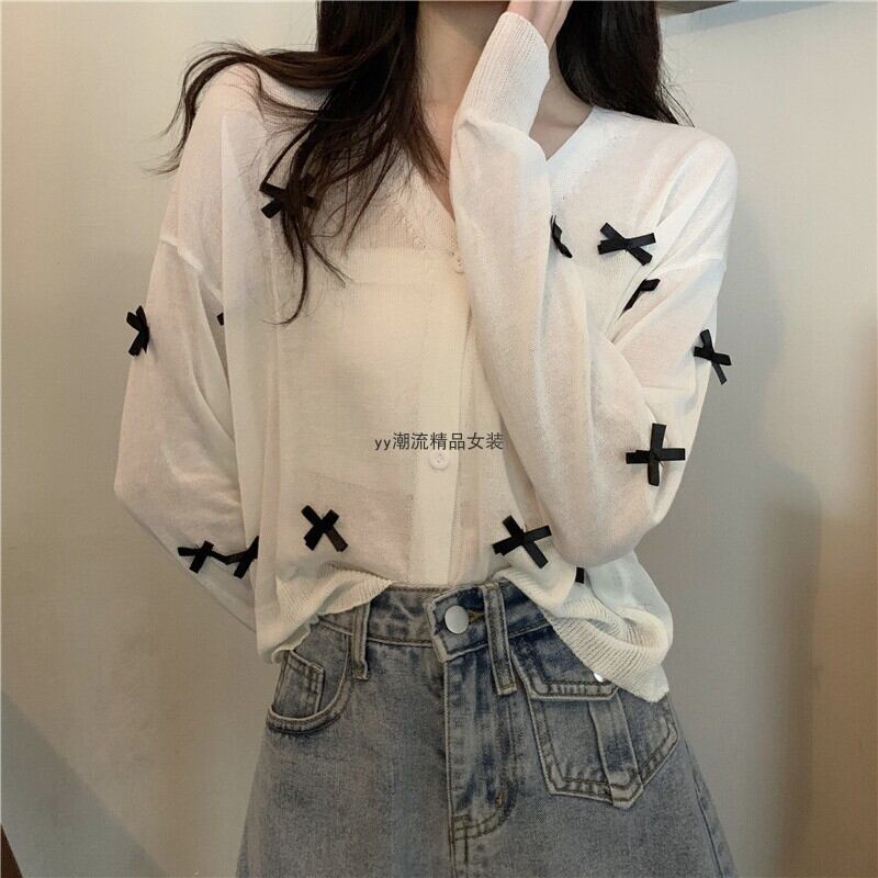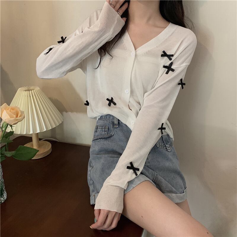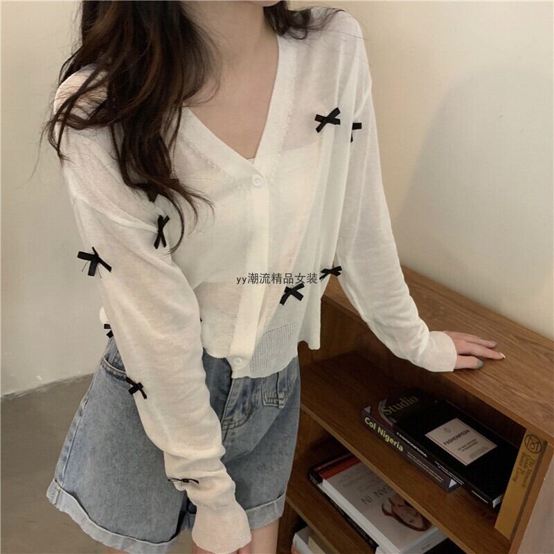 ニットカーディガンスプリングオータム薄手Vネックショートトップス ロング 春物 秋物 シルク YY-ファッション63716652221